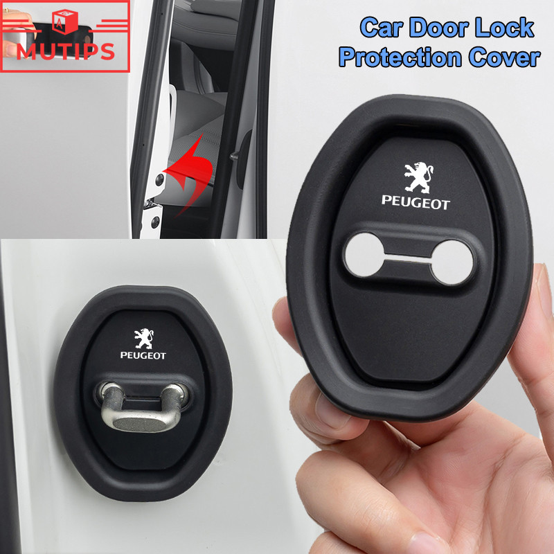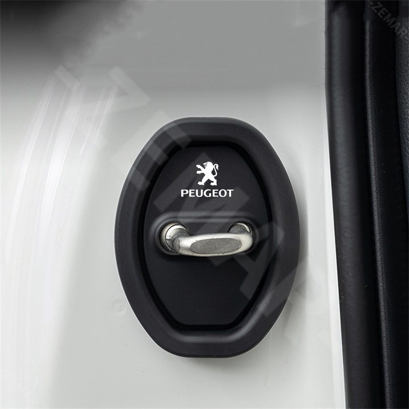 4ชิ้น/เซ็ Peugeot ตรถซิลิโคนประตูล็อคฝาค รถช็อกประตูสลักแผ่นป้องกัน อุปกรณ์เสริมรถยนต์ 206 208 207 307 308 2008 3008 508 408 5008 406