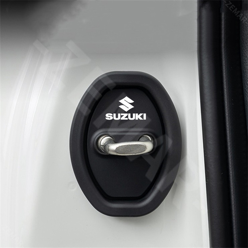 4 ชิ้น Suzuki ซิลิโคนรถประตูล็อคฝาครอบป้องกันประตูล็อคโช้คอัพเงียบอุปกรณ์เสริมสําหรับ Suzuki Jimny Swift Ertiga Celerio XI7 Ciaz