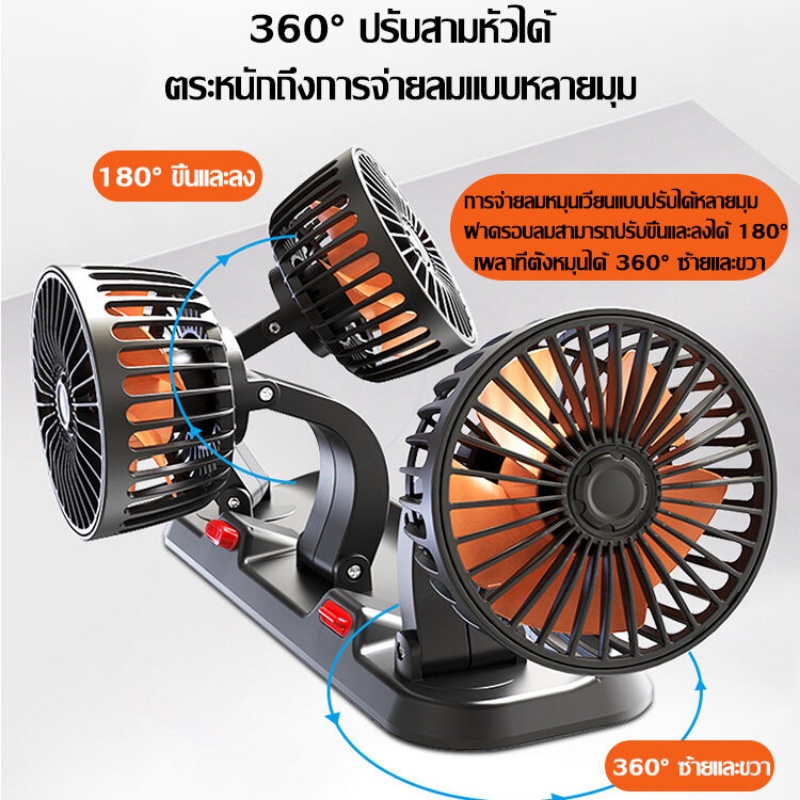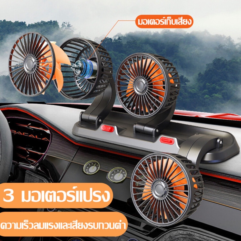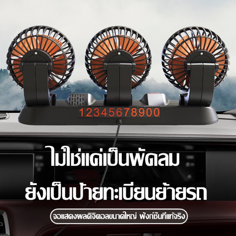 ?ในรถไม่ร้อนแล้ว?สามหัว พัดลมในรถยนต์ พัดลมติดรถยนต์ พัดลมรถยนต์ หมุนได้รอบทิศทาง360องศารอบคูลลิ่ง เหมาะกับรถทุกรุ