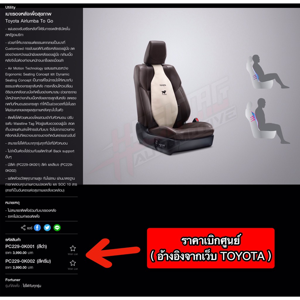 ( ของแท้ราคาถูกกว่าศูนย์!!! ) Toyota Airlumba ToGo [แอร์ลัมบาร์ ทู โก] เบาะรองหลังเพื่อสุขภาพ ลดอาการเมื่อยล้าขณะขับขี่