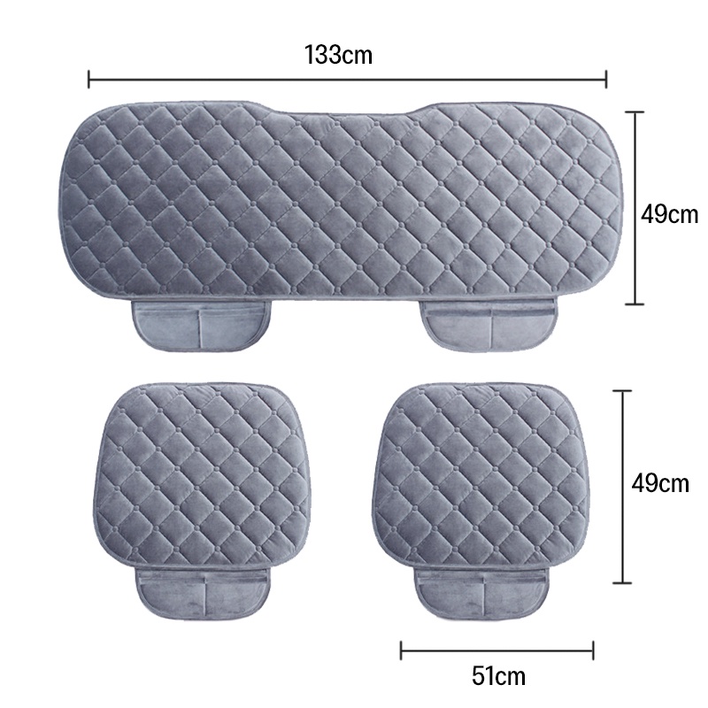?เบาะรองนั่งรถยนต์ เบาะกํามะหยี่ 3 ชิ้น ครึ่งแพ็คไม่มีพนักพิง ไม่ผูกมัดและไม่ลื่น เบาะรองนั่งหนา เข้ากันได้กับรถทุกรุ่น