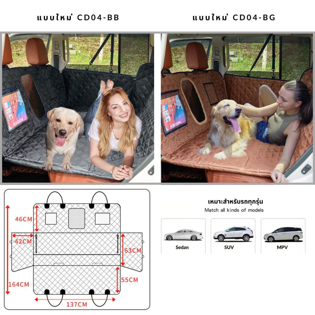 ?พร้อมส่ง?ผ้าคลุมเบาะรถยนต์แบบใหม่ รองเบาะกันเปื้อน ผ้าคลุมหลังเบาะสำหรับสัตว์เลี้ยง รถยนต์extender car backseat cover