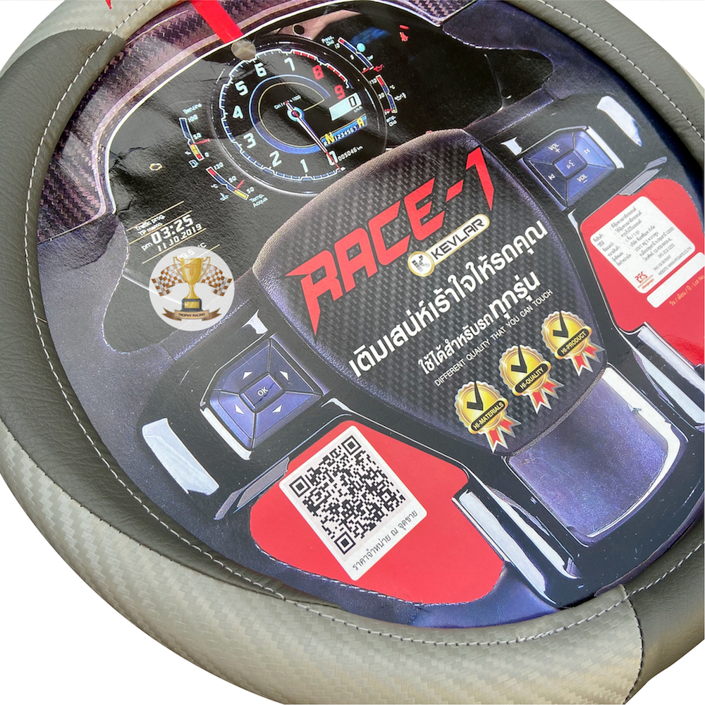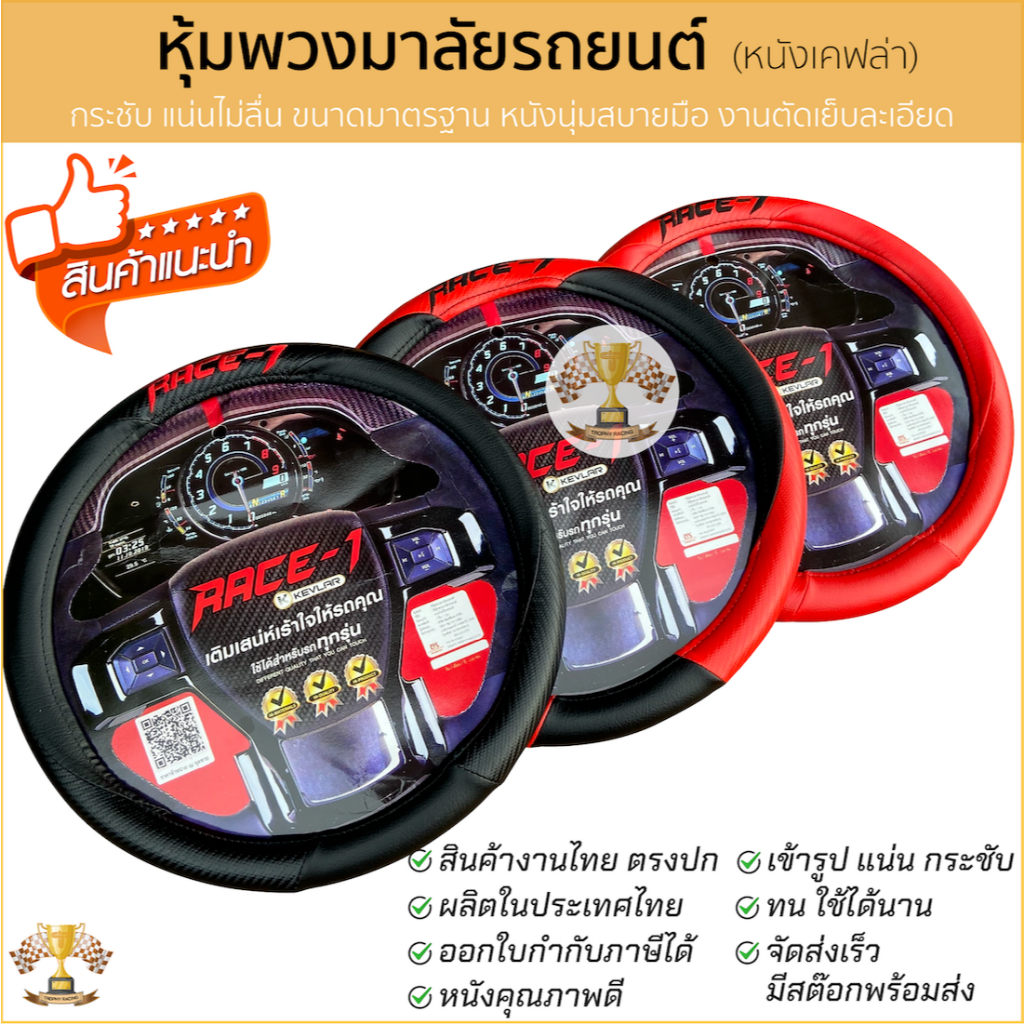 (99LIFE1A ลด 25 %) ปลอกหุ้มพวงมาลัยหนัง > เคฟล่า < หนังหุ้มพวงมาลัย ขนาดมาตรฐาน 38CM. หุ้มเต็มกระชับมือ หุ้มพวงมาลัย