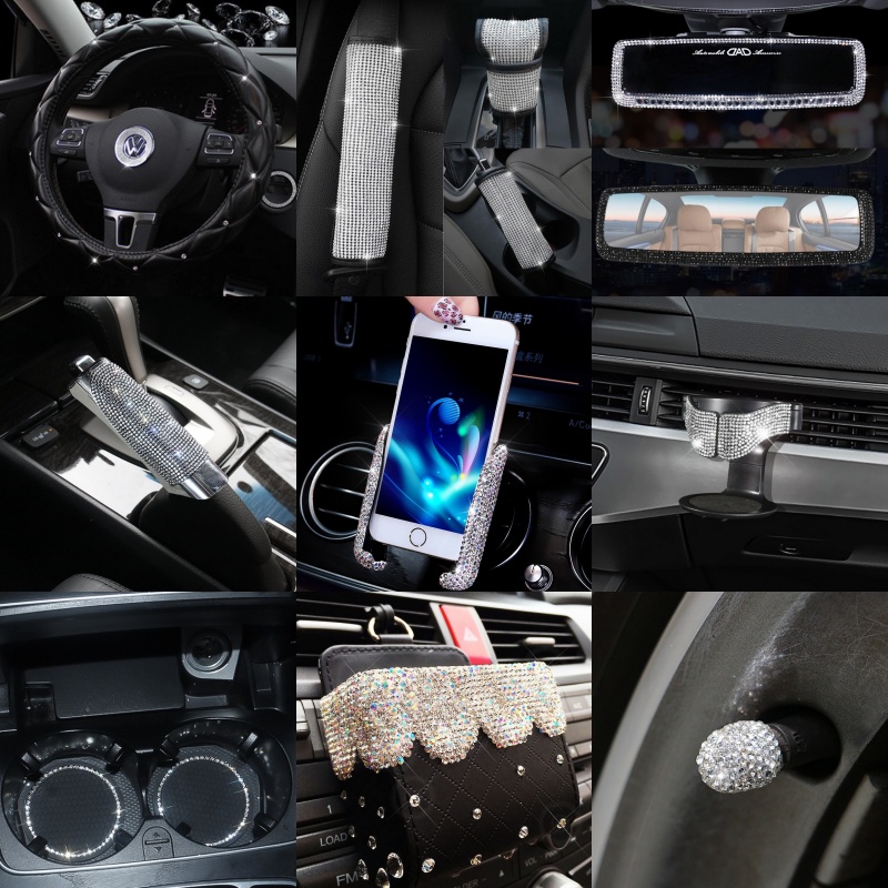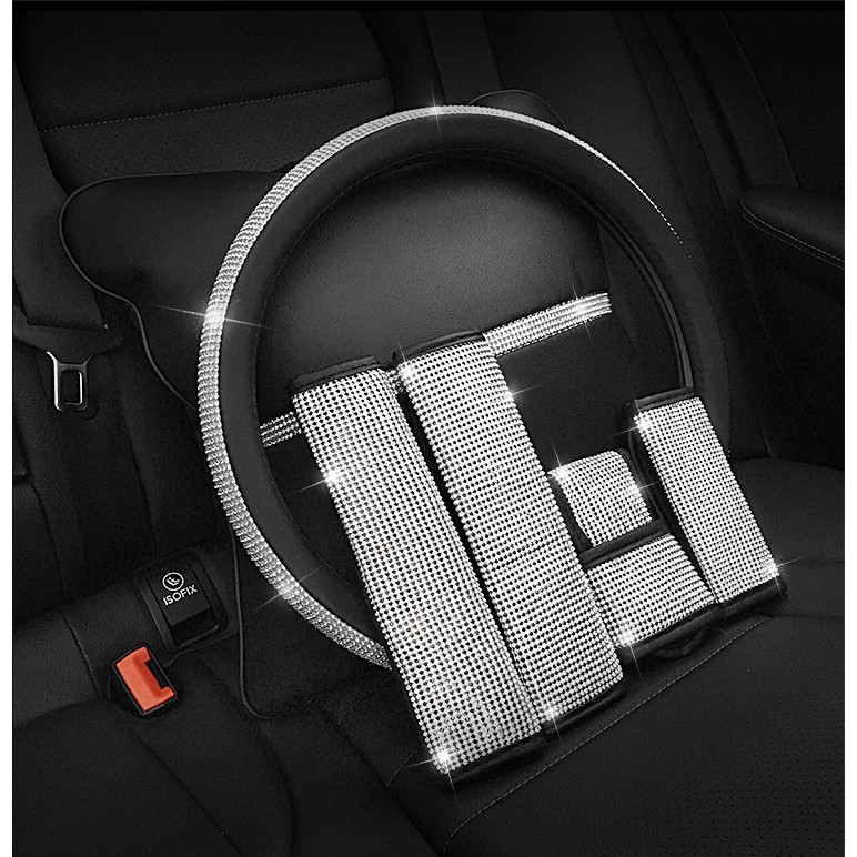 ชุดแต่งรถติดเพชร ของแต่งรถยนต์ เพชรแต่งรถ หุ้มพวงมาลัยรถยนต์ ปลอกหุ้มเกียร์ ปลอกหุ้มเบรกมือ ปลอกหุ้มเข็มขัด