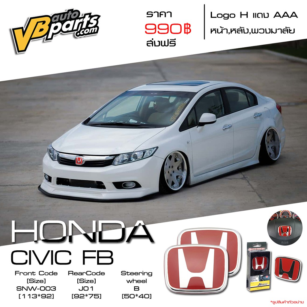 จัดส่งฟรี Logo H แดง Honda Civic FB ปี 12-15 แถมฟรี Logo H แดง พวงมาลัย 1 ชิ้น