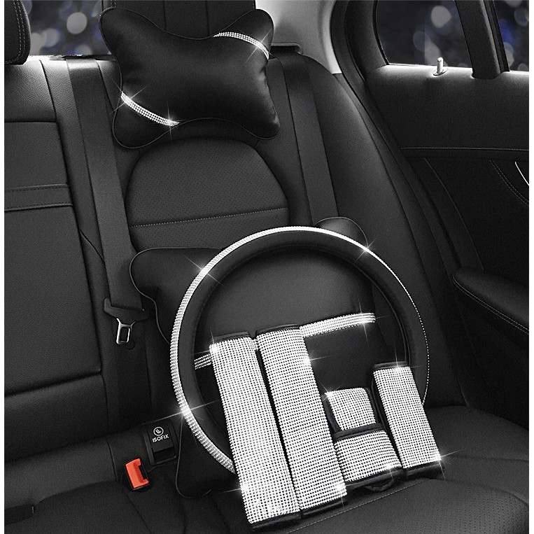 ชุดแต่งรถ หุ้มพวงมาลัย ปลอกเข็มขัด หุ้มเกียร์ หมอนรองคอ กระเป๋าใส่กุญแจ ที่แขวนของ เพชร (พร้อมส่ง)