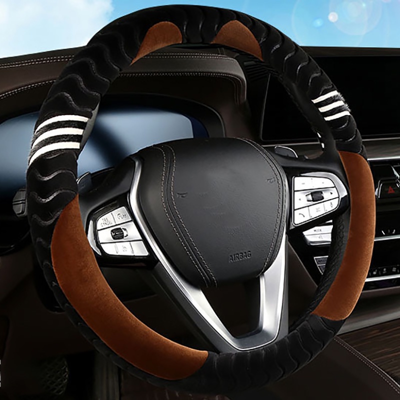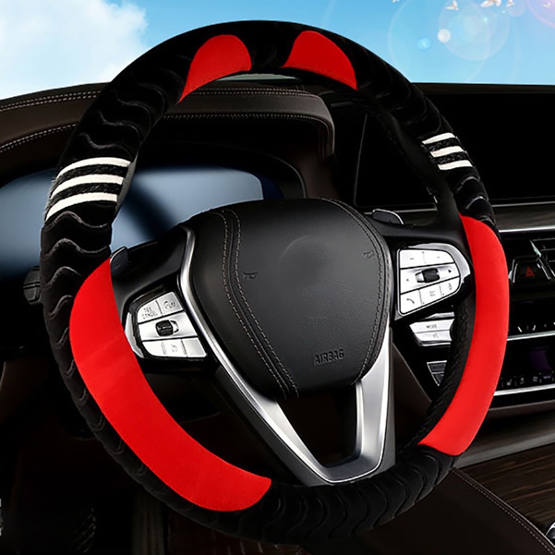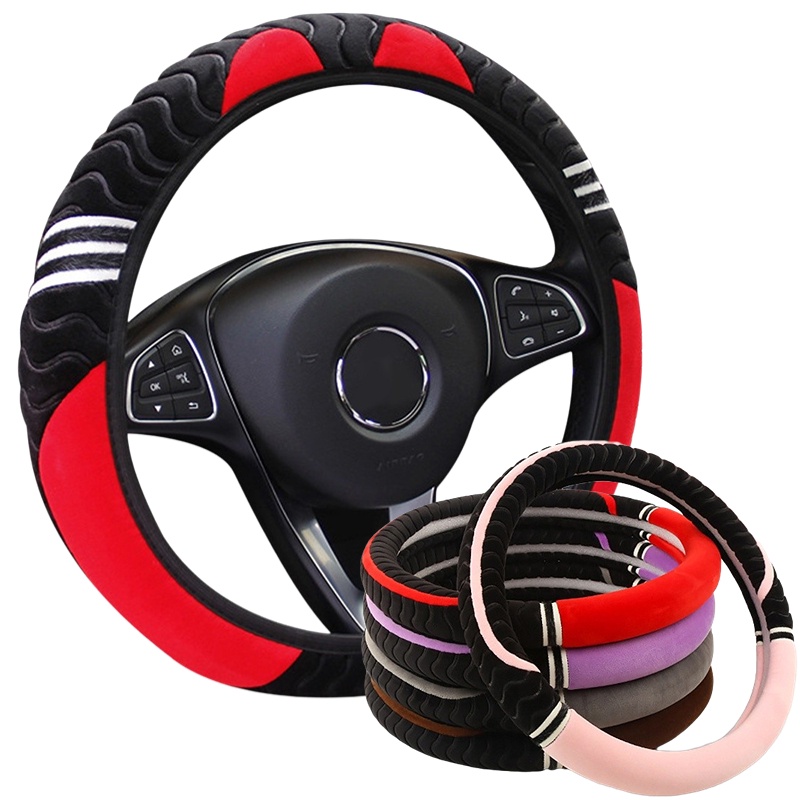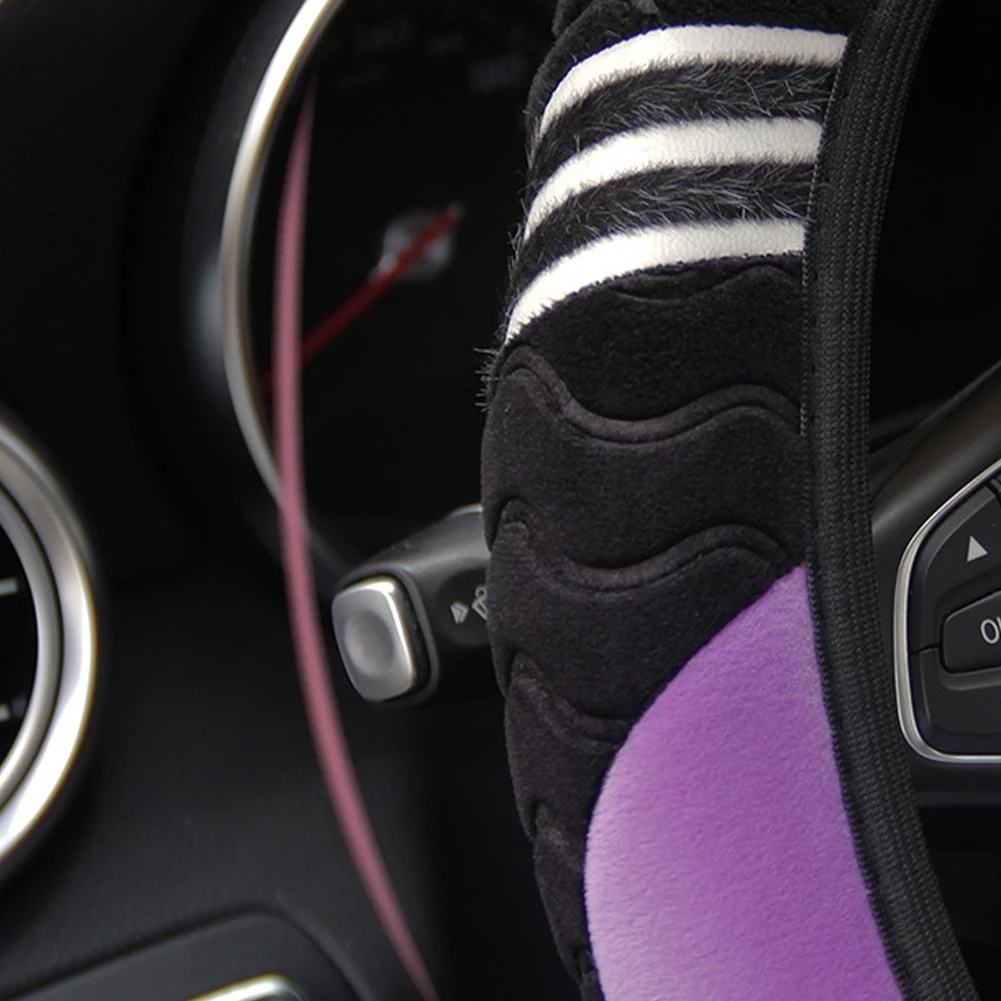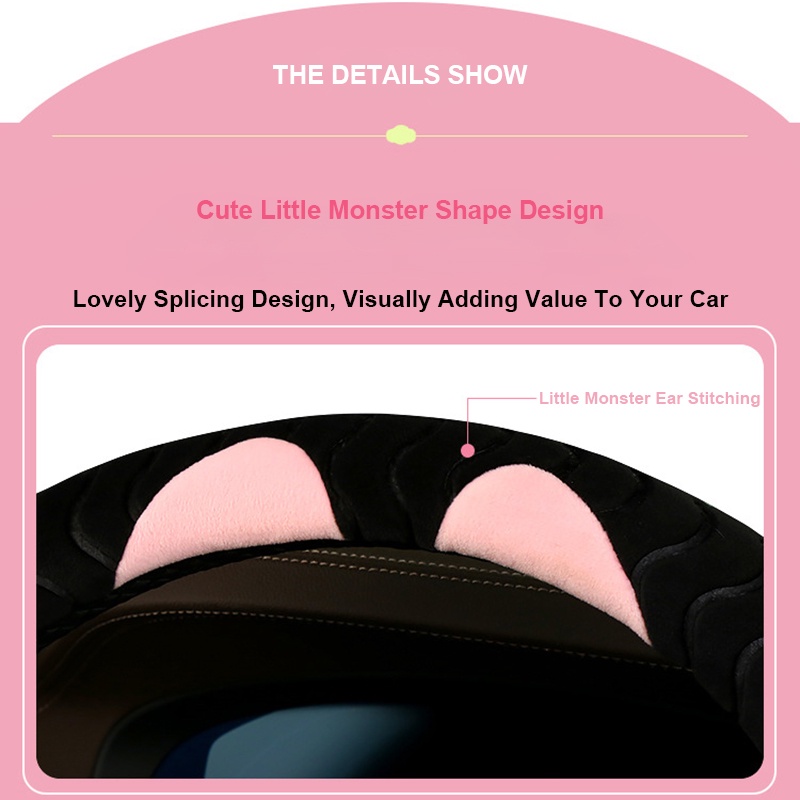 ปลอกหุ้มพวงมาลัยรถยนต์ ผ้ากํามะหยี่ขนนิ่ม ลายมอนสเตอร์ตัวน้อย ขนาด 15 นิ้ว 38 ซม. กันลื่น ให้ความอบอุ่น