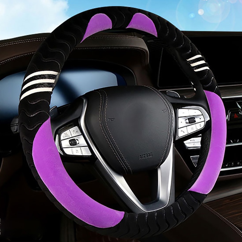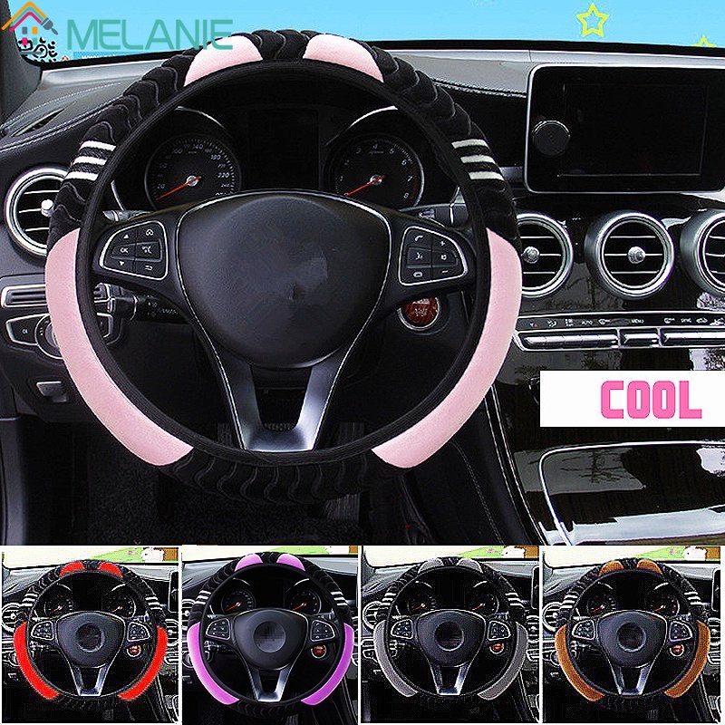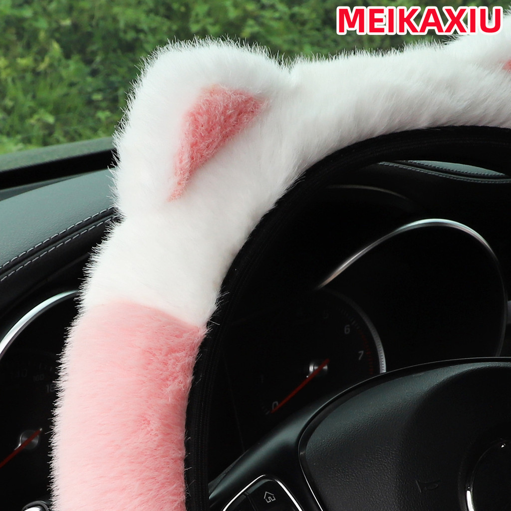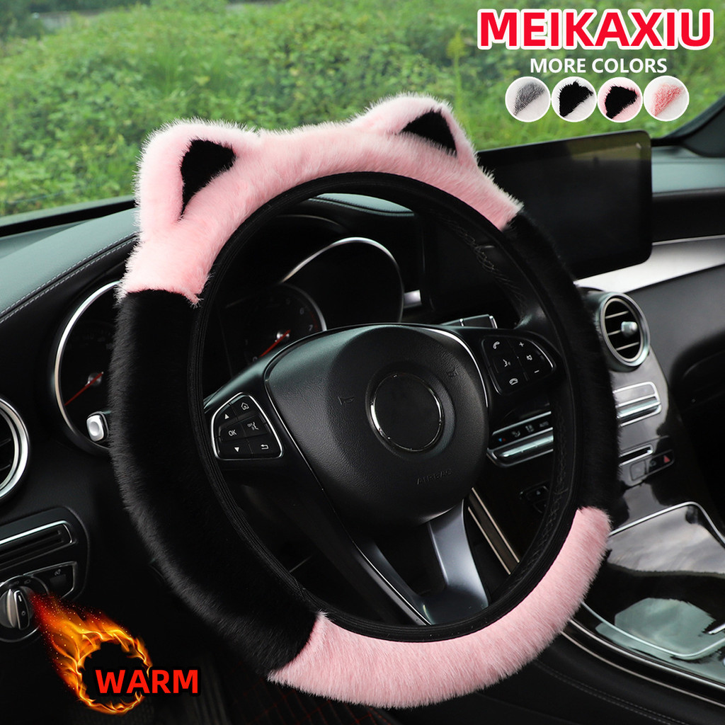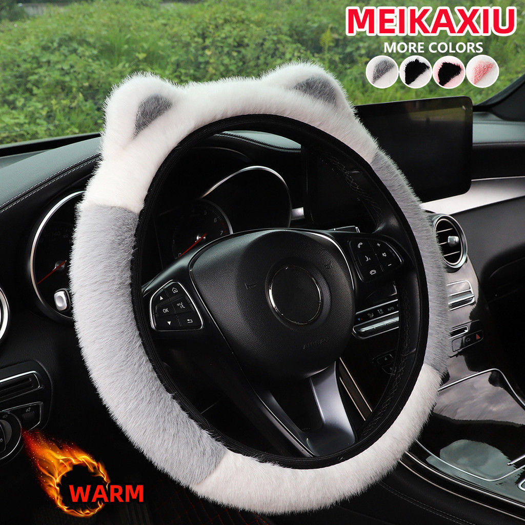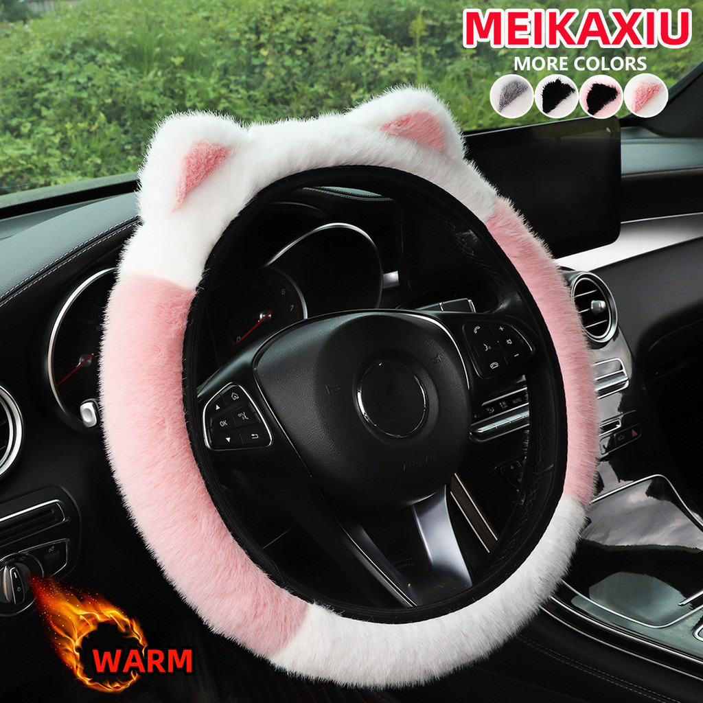 ปลอกหุ้มพวงมาลัยรถยนต์ ลายการ์ตูนแมวน่ารัก กันลื่น ให้ความอบอุ่น ขนาด 37-38 ซม. หลากสี