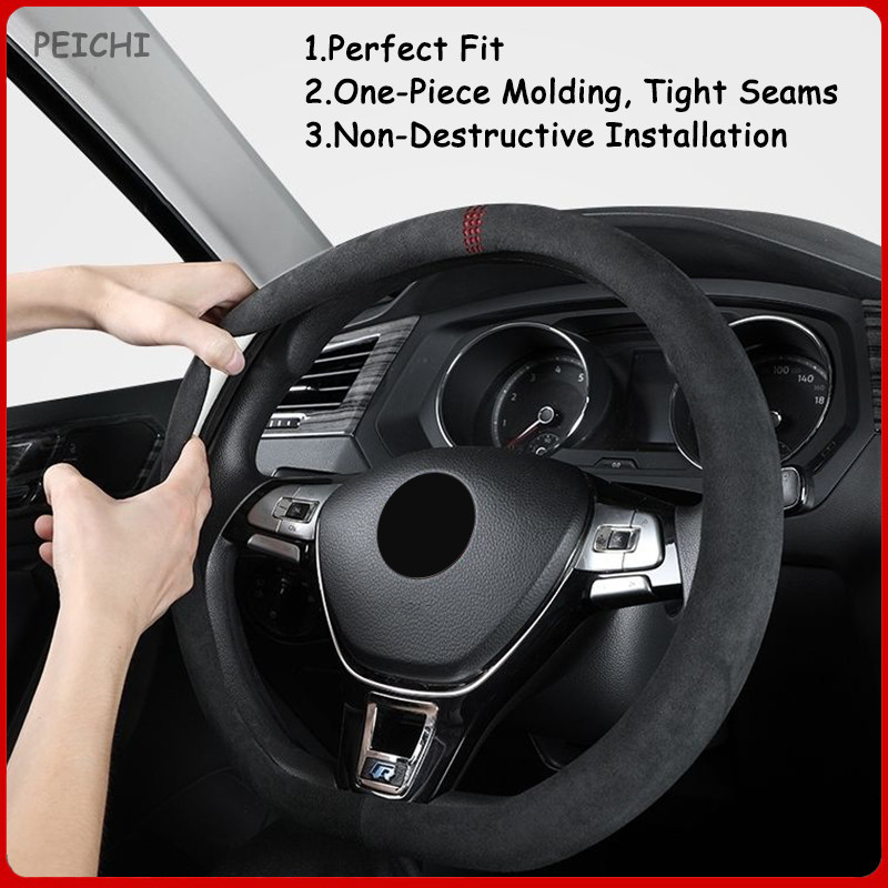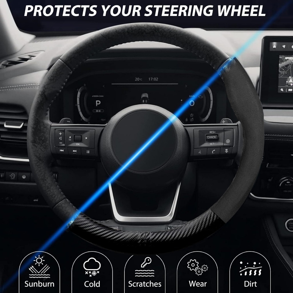 ปลอกหุ้มพวงมาลัยรถยนต์ หนังนิ่ม คาร์บอนไฟเบอร์ กันลื่น ดูดซับเหงื่อ คุณภาพสูง ALCANTARA ใช้ได้กับหลายรุ่น กระชับมือ