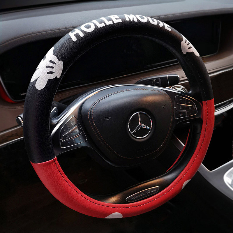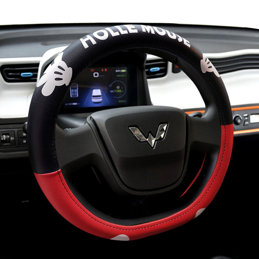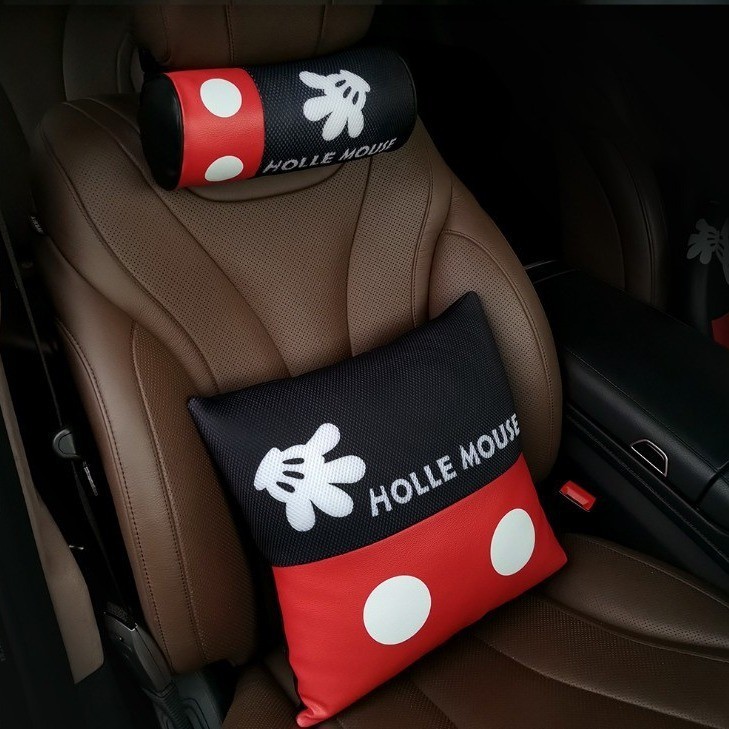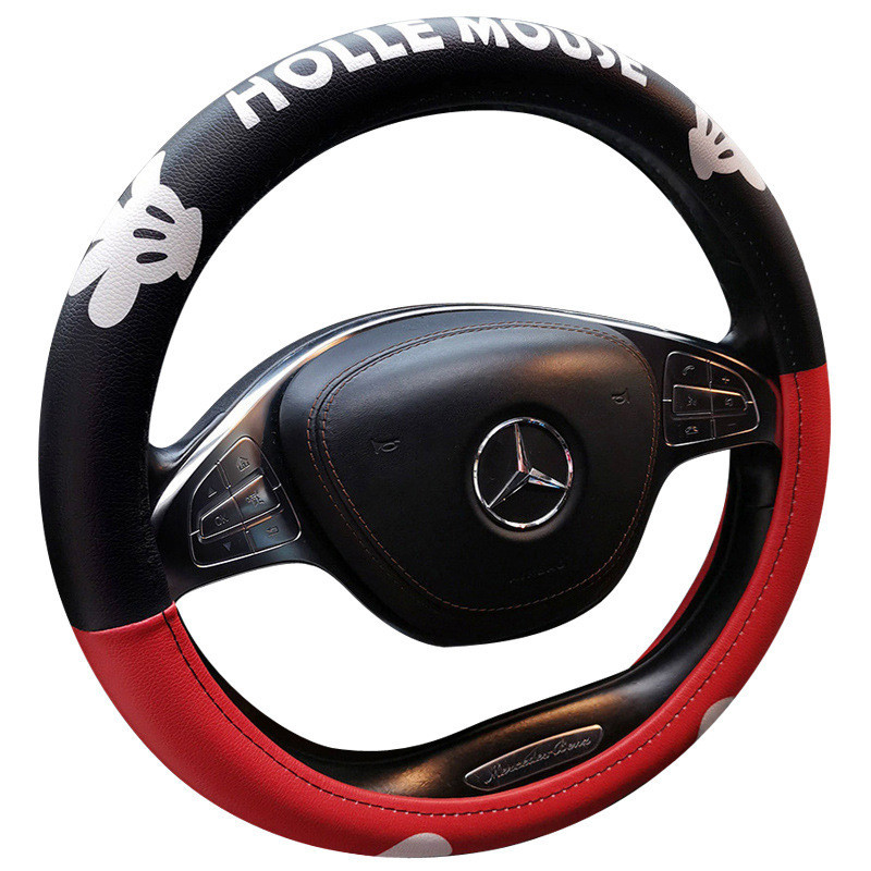 ปลอกหุ้มพวงมาลัยรถยนต์การ์ตูนน่ารักพิมพ์ดิจิตอลหนังหนังชุดพนักพิงศีรษะมิกกี้เมาส์