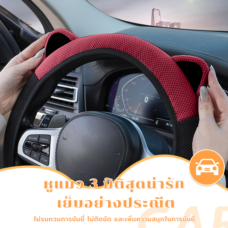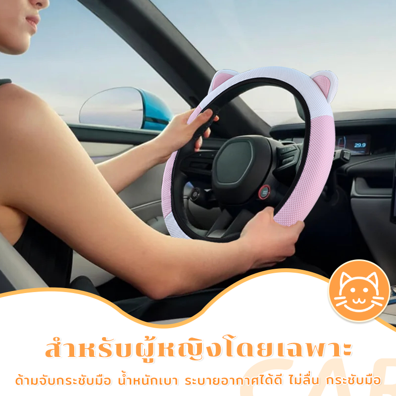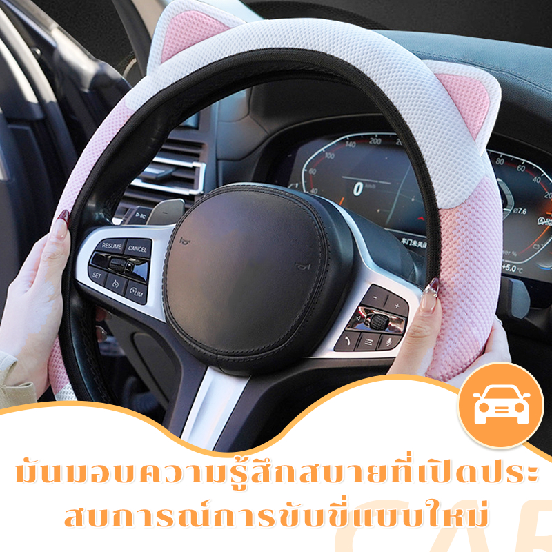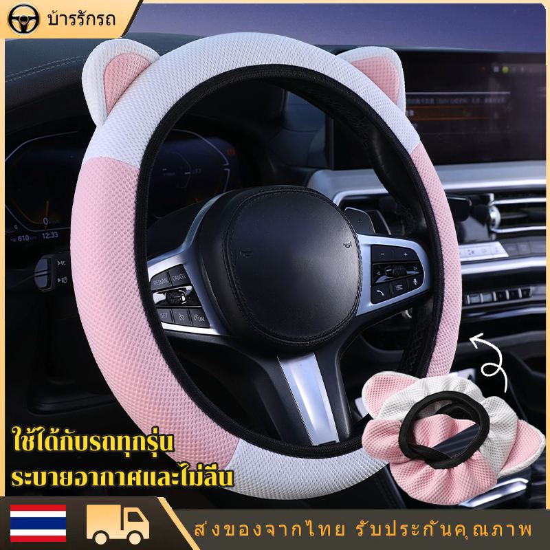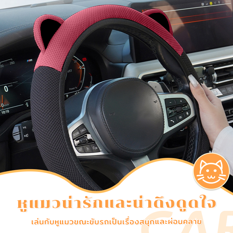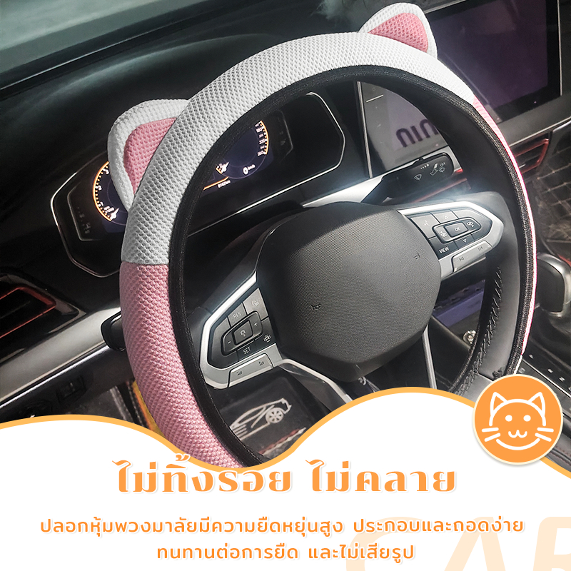 ปลอกหุ้มพวงมาลัยรถยนต์ ลายการ์ตูนน่ารัก รูปหูแมว กันลื่น ขนาดเล็ก