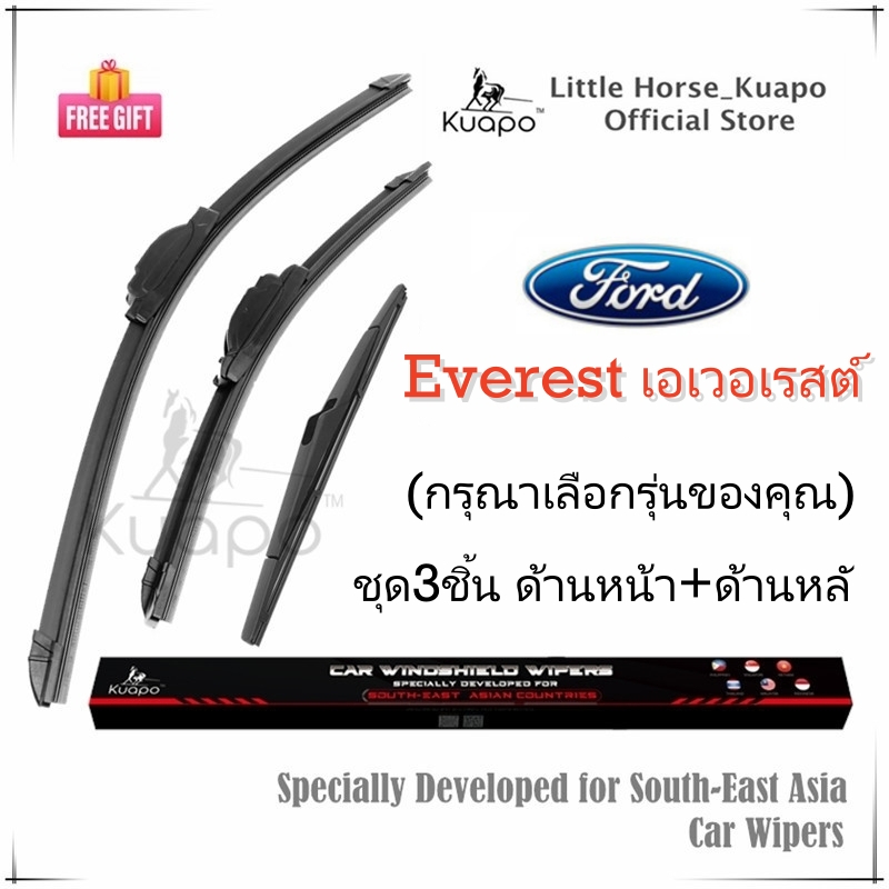 Kuapo ชุด3ชิ้น ใบปัดน้ำฝน ฟอร์ด เอเวอร์เรส Ford Everest ที่ปัดน้ำฝน กระจก (ด้านหน้า+ด้านหลั) รถยนต์ ฟอร์ดเอเวอเรสต์