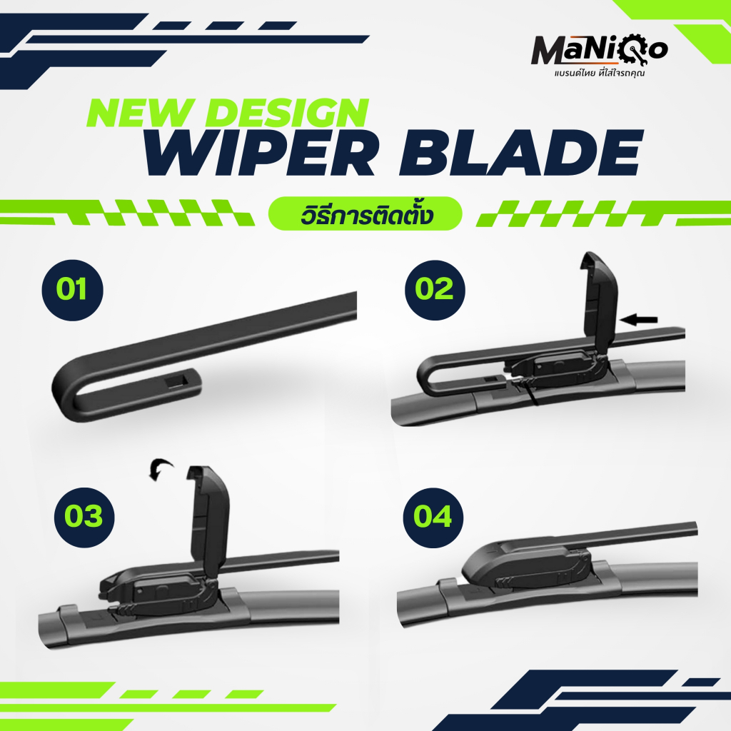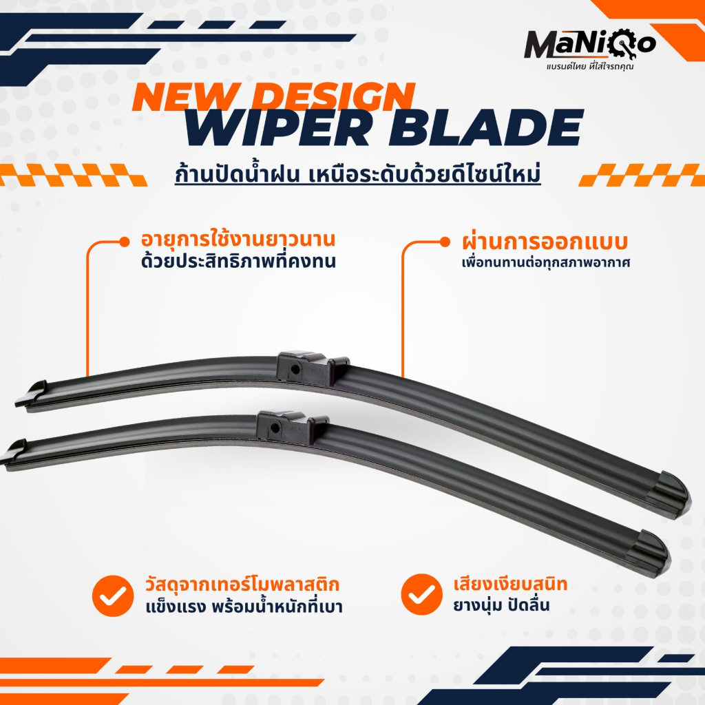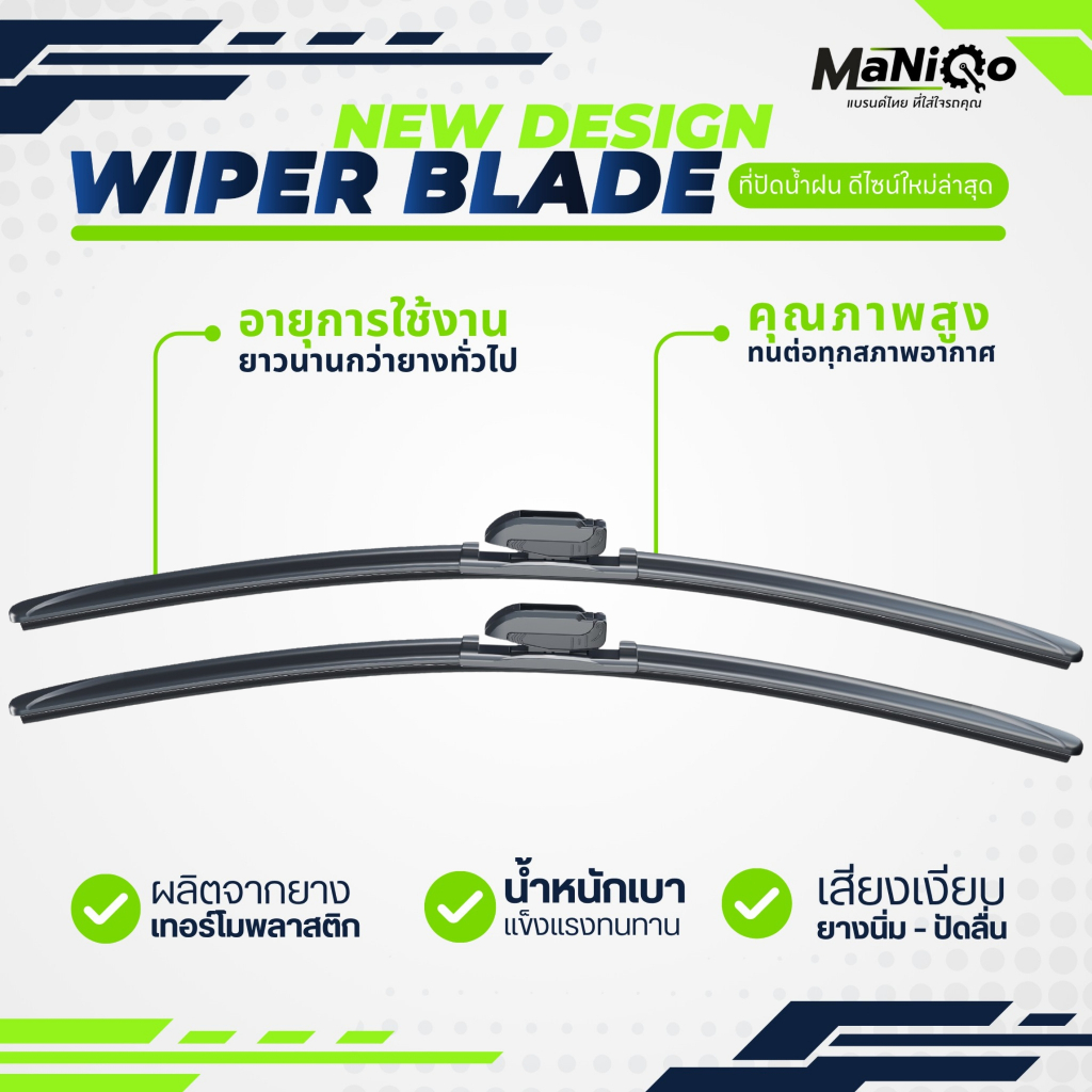 MANIQO ใบปัดน้ำฝน [1คู่] TOYOTA YARIS / ATIV ยาริส เอทีฟ ตรงรุ่น แถมฟรี น้ำยาเคลือบกระจก+ผ้าเช็ดรถ