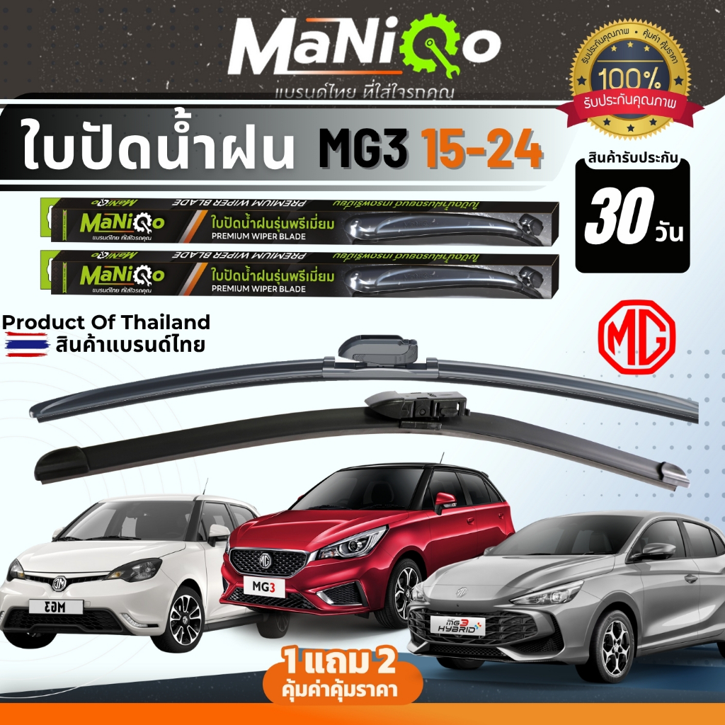 MANIQO ใบปัดน้ำฝน MG3 / MG3 HYBRID ทุกรุ่น เกรดพรีเมี่ยม [1คู่] แถมฟรีน้ำยาเคลือบกระจก+ผ้าเช็ดรถ
