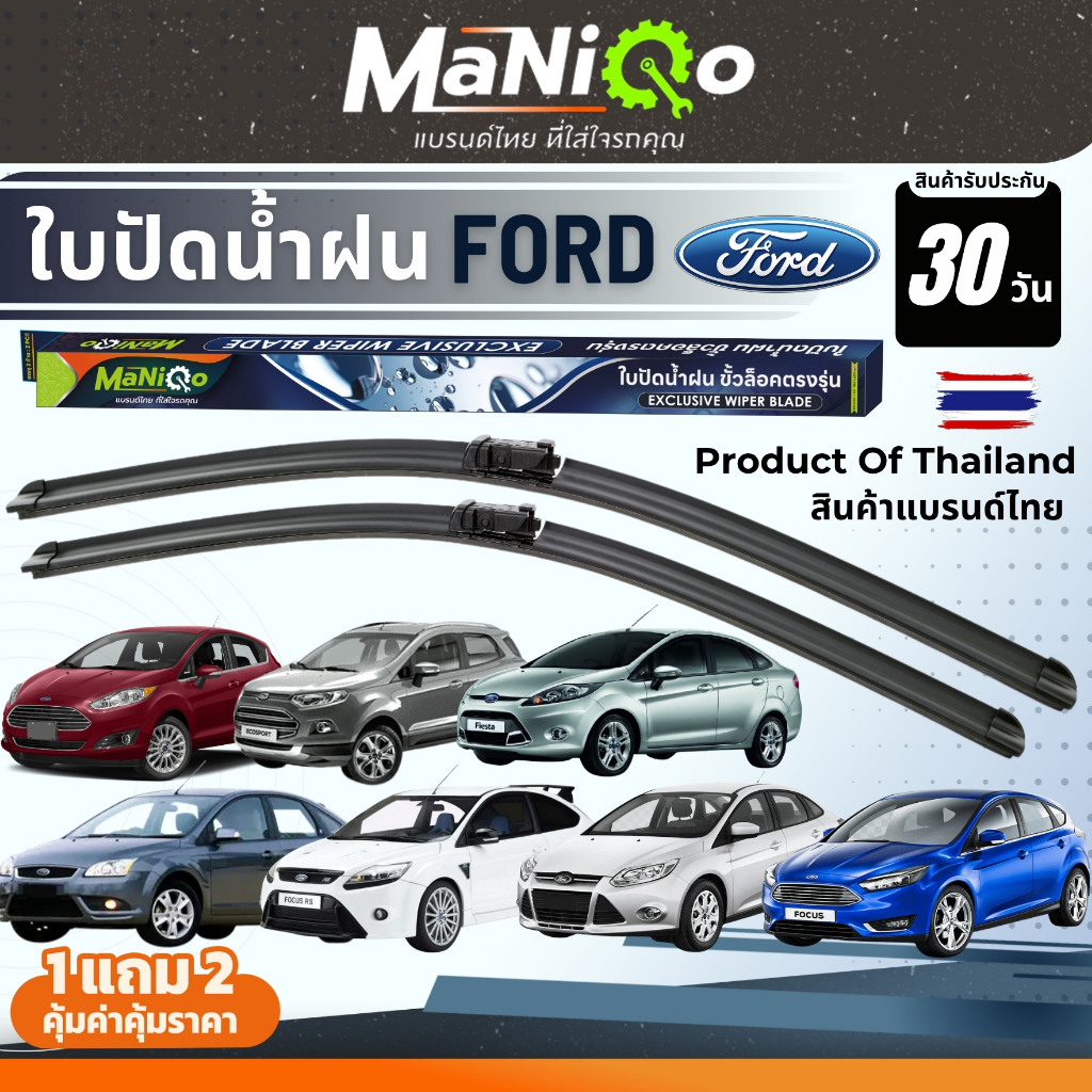 MANIQO ใบปัดน้ำฝน FORD Fiesta / Focus / Ecosport ทุกรุ่น [1คู่] แถมฟรี น้ำยาเคลือบกระจก+ผ้าเช็ดรถ