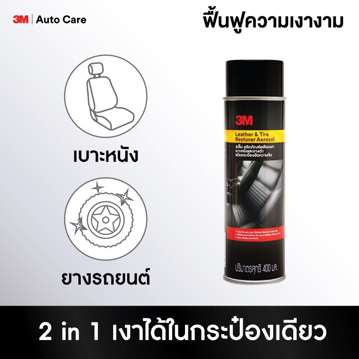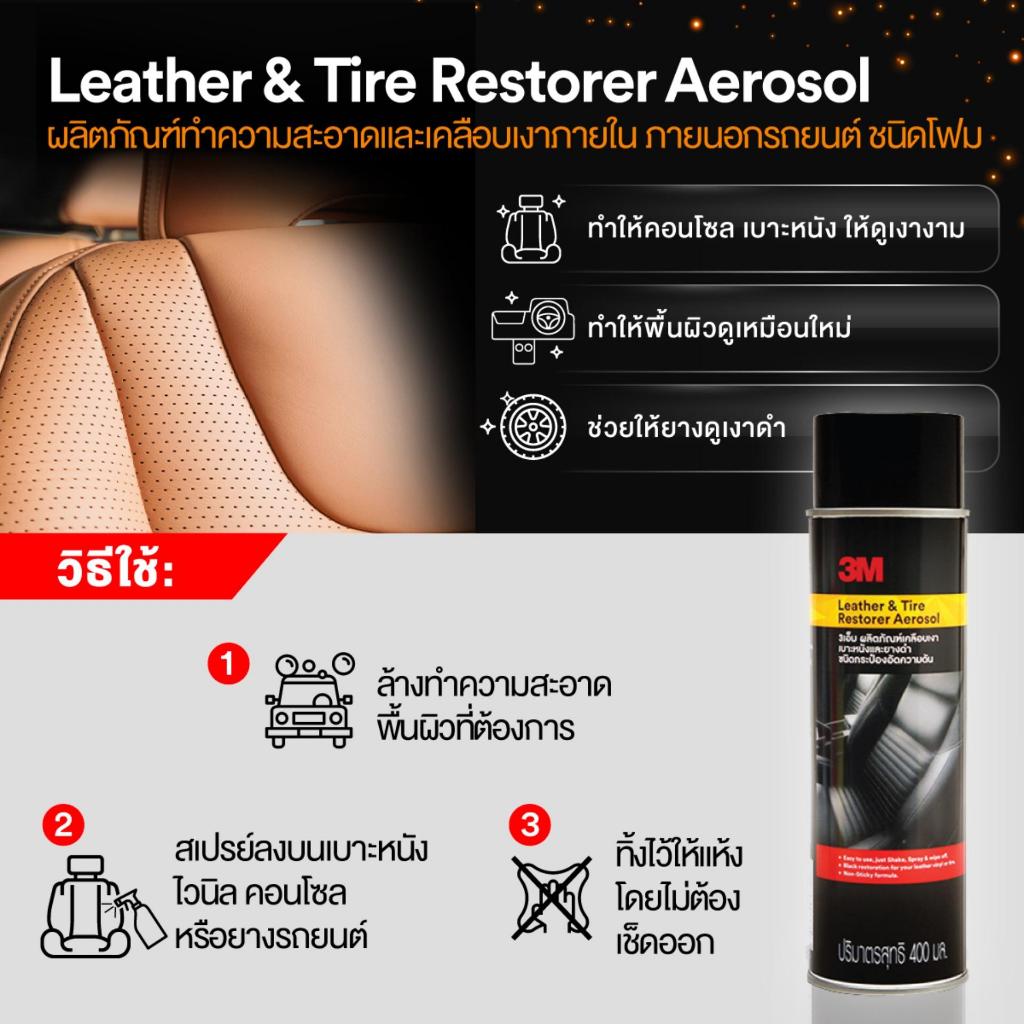 3M™ Leather and Tire Restorer Aerosol 39041A, 400 mL, สเปรย์เคลือบเงาเบาะหนังและยางรถยนต์ (400 มล.) คืนความสดใสเหมือนใหม