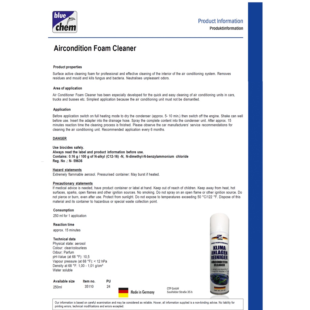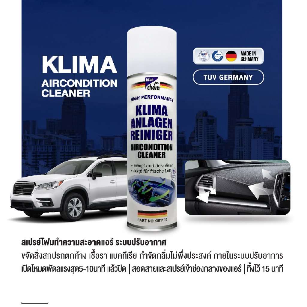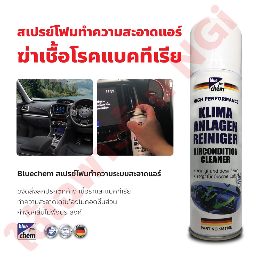 Bluechem สเปรย์โฟมทำความสะอาดแอร์รถยนต์ 250 มล. กำจัดกลิ่นไม่พึงประสงค์เชื้อราและแบคทีเรียไม่ต้องถอด
