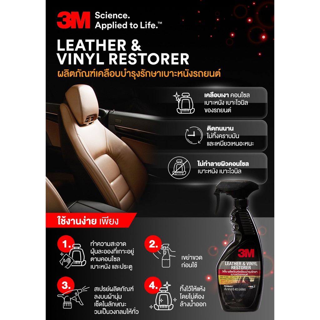 3M สเปรย์เคลือบเงา สูตรเสริมความเงา GLOSS ENHANCER PN39034LT+3M ผลิตภัณฑ์เคลือบบำรุงรักษาเบาะหนังรถยนต์ PN39040LT