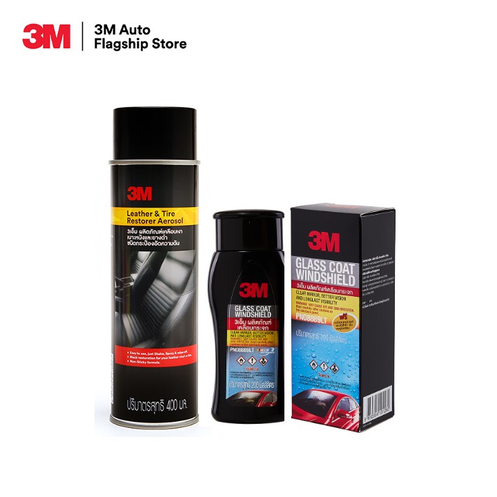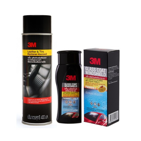 3M ผลิตภัณฑ์เคลือบกระจก PN08889LT + 3M ผลิตภัณฑ์เคลือบเงาเบาะหนังและยางดำ ชนิดอัดกระป๋องความดัน ขนาด 400ml. PN39041A