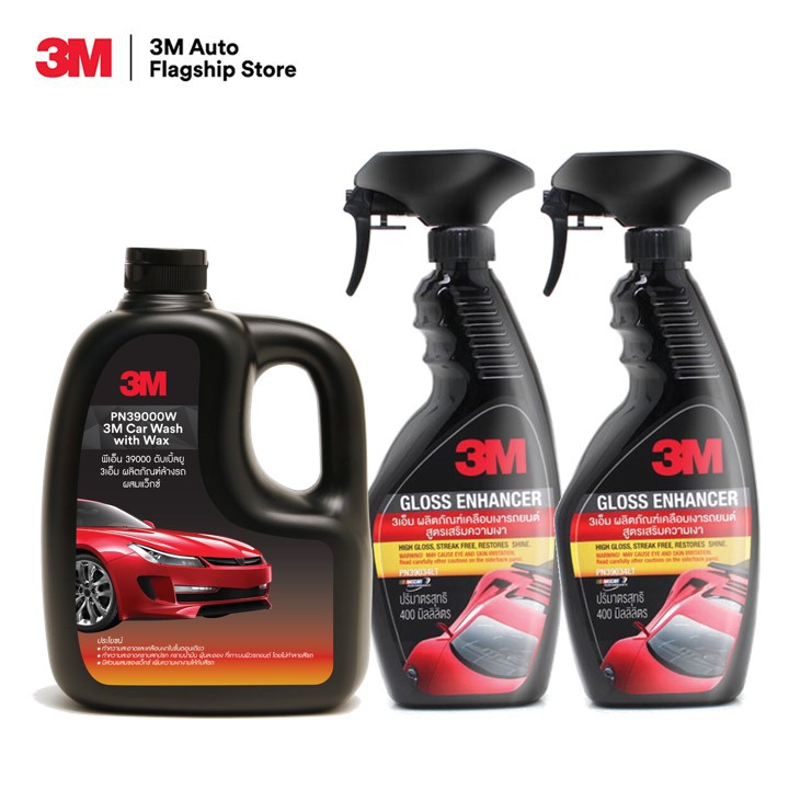 3M แชมพูล้างรถ ผสมแว็กซ์ PN39000W + (2 ขวด) 3M สเปรย์เคลือบเงาสีรถ สูตรเสริมความเงา PN39034LT