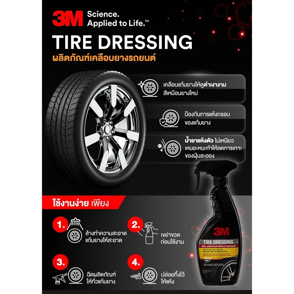 3M (3 ขวด) ผลิตภัณฑ์เคลือบเงายางรถยนต์ Tire Dressing ขนาด 400ml. PN39042LT