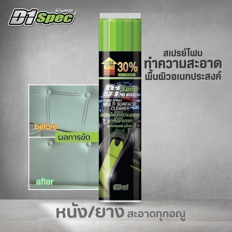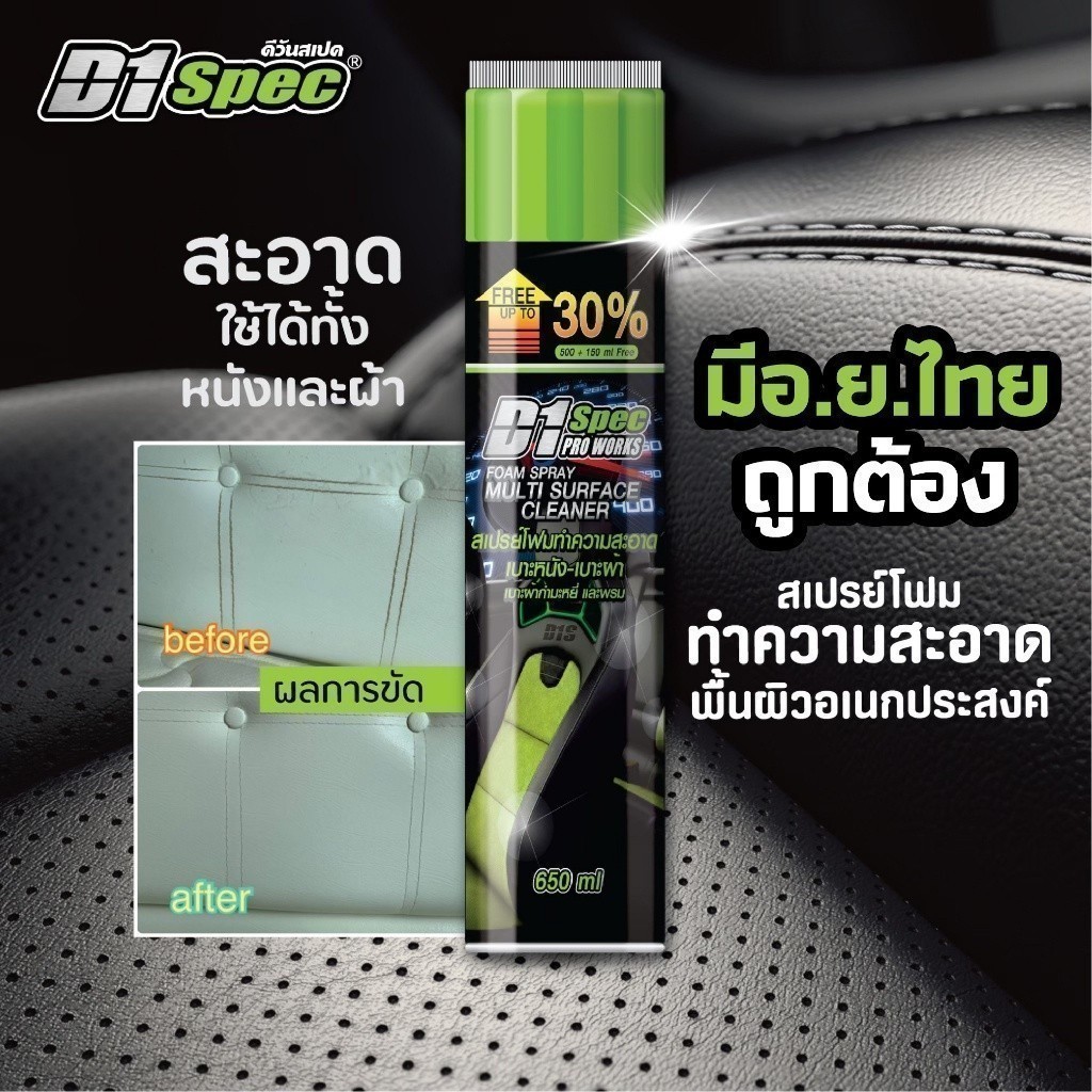 D1Spec สเปรย์โฟมทำความสะอาดเบาะหนังเบาะผ้า เบาะกำมะหยี่ พรหมรถยนต์ โซฟาในบ้าน