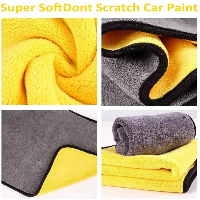 รถไมโครไฟเบอร์ซักผ้าผ้าขนหนูสองชั้นข้นรถทําความสะอาดบ้านเช็ดเศษผ้านุ่มอบแห้งผ้าผ้าขนหนู30/40/60เซนติเมตร