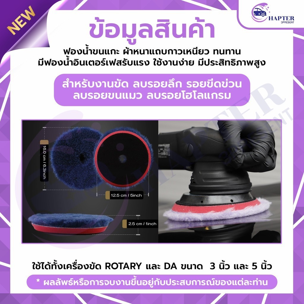 ฟองน้ำขัดสี 5 นิ้ว spta ฟองน้ำขัดขนแกะ ขนแกะขัดสี ฟองน้ำขัดเคลือบสีรถ ฟองน้ำขัดลบรอย ฟองน้ำขัดเงา