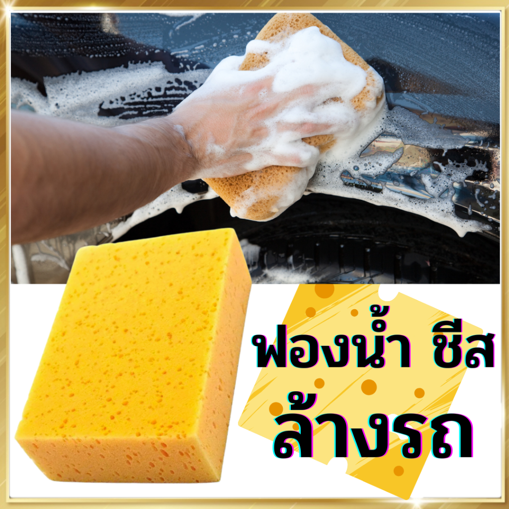 ฟองน้ำชีส ทำความสะอาดล้างรถยนต์ ซึมซับน้ำได้ดี ใช้งานอเนกประสงค์ ทรงสี่เหลี่ยม