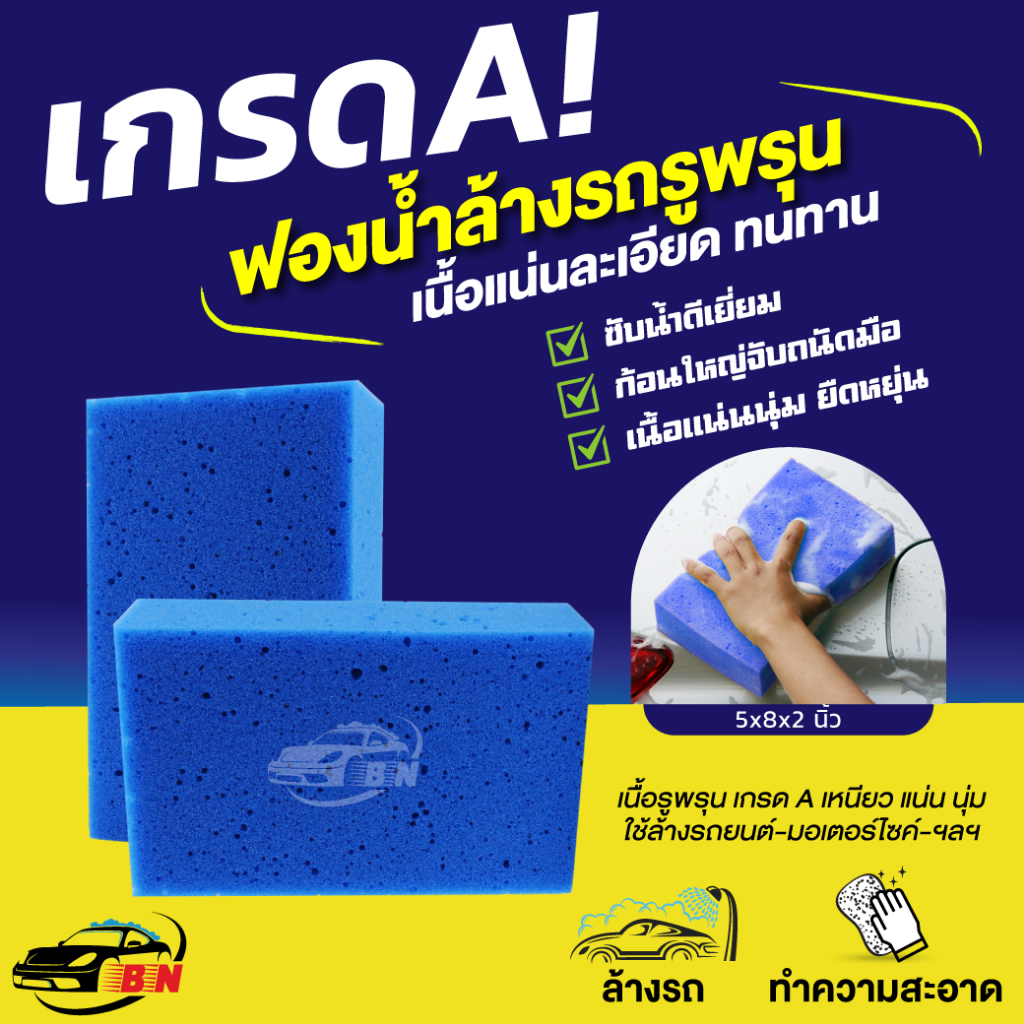 ฟองน้ำล้างรถ เกรดพรีเมี่ยม ซึมซับน้ำดี่เยี่ยม ไม่ทำลายผิวสีรถ ขนาดใหญ่พอดีมือ