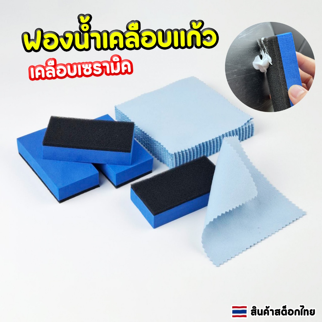 ฟองน้ำเคลือบแก้ว ผ้าพร้อมฟองน้ำเคลือบเซรามิค เนื้อละเอียดไม่ทำลายสีรถ ขนาดมาตรฐาน