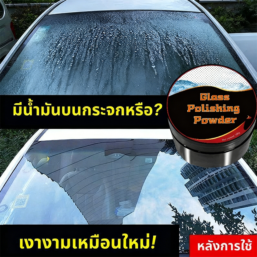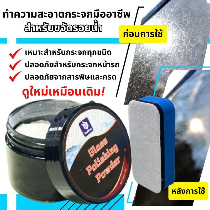 เช็ดกระจก ผงขัดกระจกรถยนต์ เกรดพรีเมี่ยม น้ำยาล้างกระจกหน้ารถ ขจัดคราบน้ำ ฟองน้ำฟรี ผงขัดกระจกรถยนต์ น้ํายา ขัดไฟ