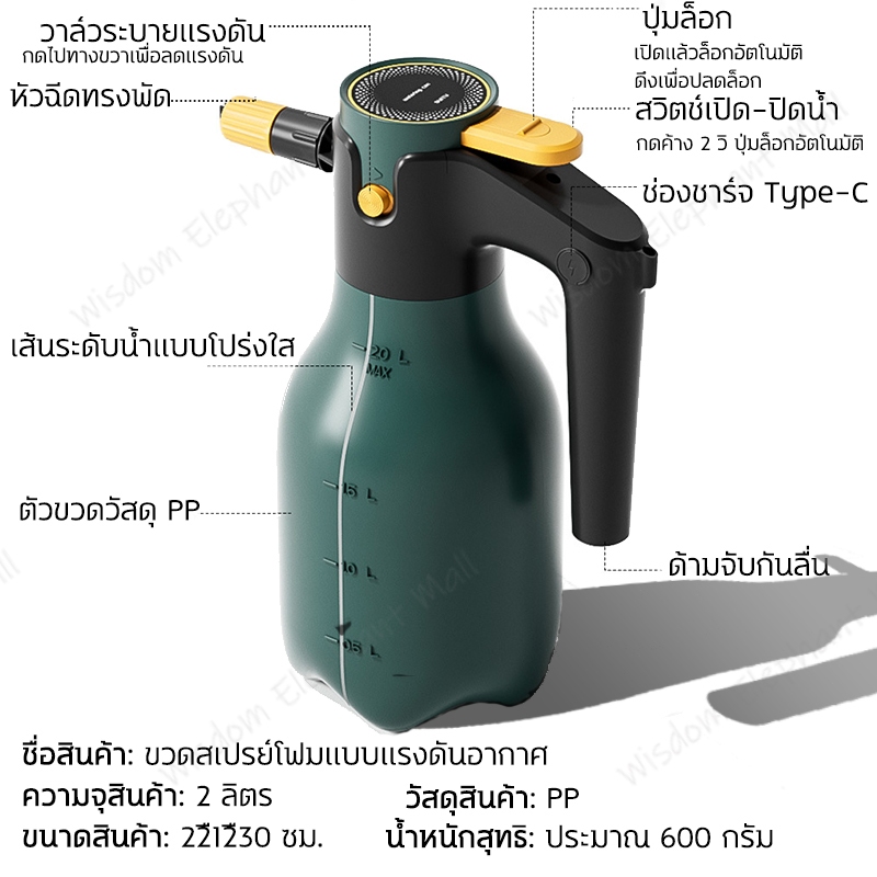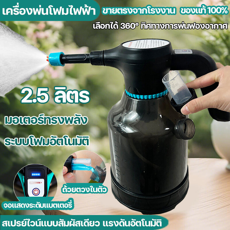 เครื่องพ่นโฟมไฟฟ้า ถังฉีดโฟมไฟฟ้า 2.5 ลิตร ถังฉีดโฟมล้างรถ ระบบโฟมอัตโนมัติ มอเตอร์ทรงพลัง เครื่องฉีดโฟม