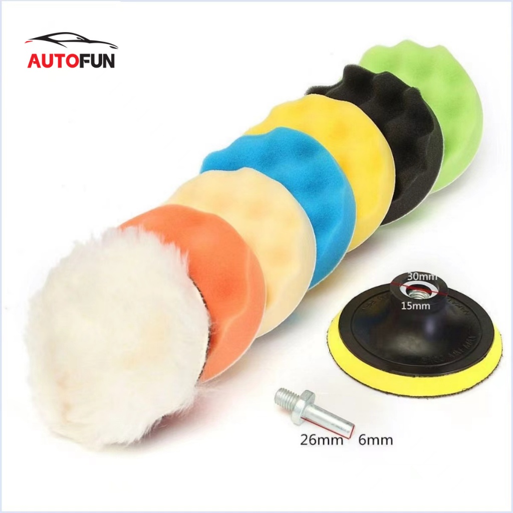 เซ็ตแผ่นขัดรถชุดทำความสะอาดฟองน้ำแว็กซ์ขัดแผ่น ด้ายขนสัตว์อัตโนมัติ Backer Pad ซ่อมรถ Care ขัดเงารถเครื่องมือ