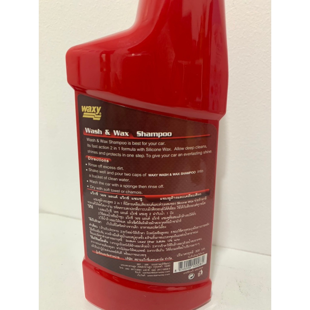 แชมพูล้างรถ 2in1 300 มล. Waxy Wash & Wax กลิ่นหอมสดชื่น ไม่มีกลิ่นเคมีมากวนใจ มีส่วนซิลิโคนแว็กซ์ที่อยู่ในตัวน้ำ