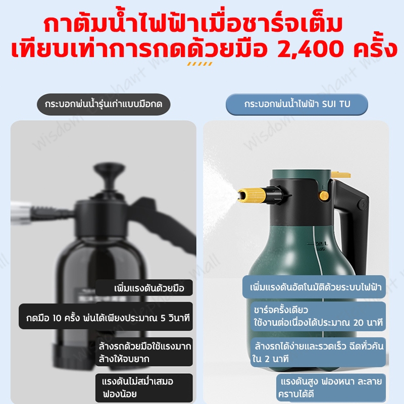 เครื่องพ่นโฟมไฟฟ้า ถังฉีดโฟมล้างรถ ความจุขนาดใหญ่ 2.5 ลิตร บัวรดน้ำไฟฟ้า ปั๊มน้ำจะฉีดโฟมอัตโนมัติ มอเตอร์ทรงพลัง