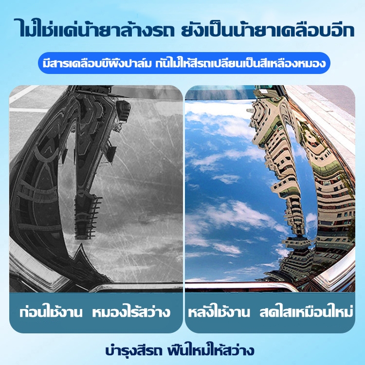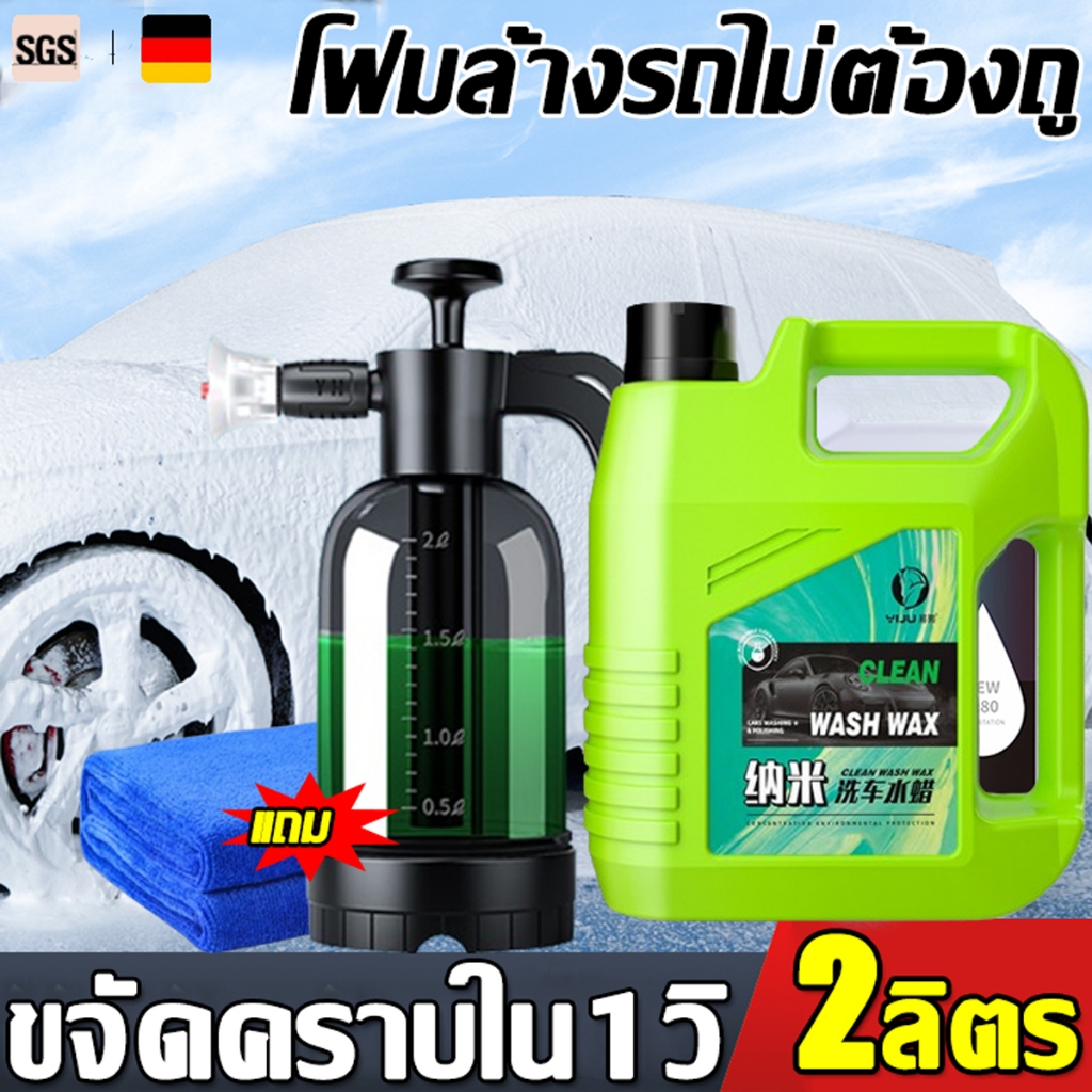 โฟมล้างรถ 1000 มล ล้างรถง่ายๆ5นาที โฟมไม่ต้องถู สูตรเข้มข้น ผสมเคลือบเงา 2ลิตร โฟมสลายคราบ น้ำยาล้างรถ ล้างสีรถล้างคราบน