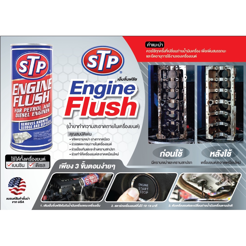 STP น้ำยาทำความสะอาดภายในเครื่องยนต์ (เบนซินและดีเซล) Engine Flush ขนาด 450 ml. รหัส19004
