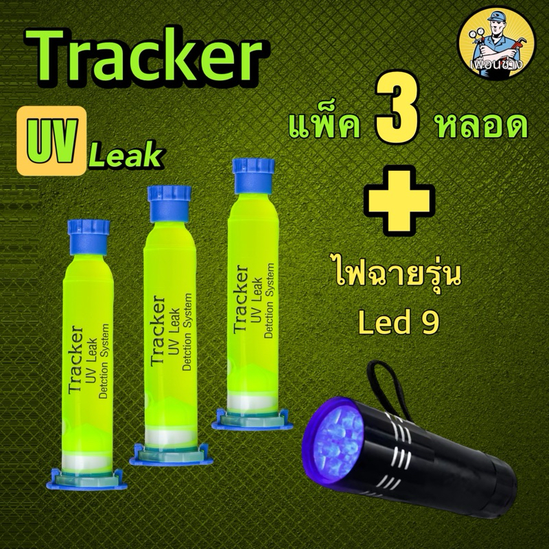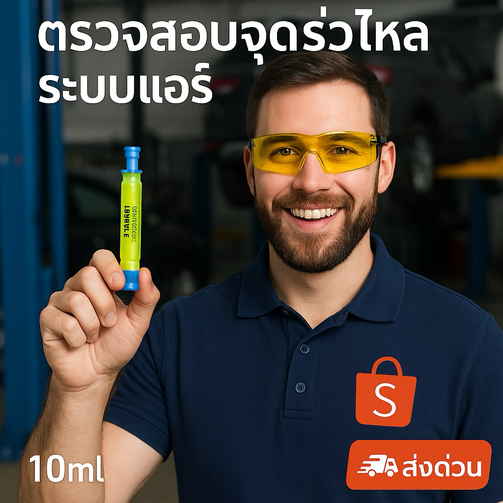 น้ำยาเช็ครั่วรถยนต์ R134a และสารทำความเย็นทุกชนิดแพ็ค3หลอด10ml.แถมไฟฉายUVรุ่น9led 003