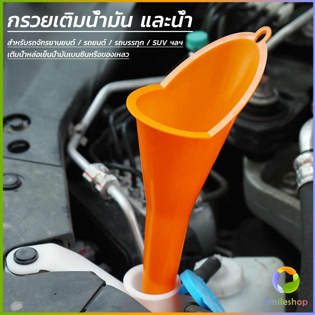 Smileshop กรวยปากยาวเติมน้ำมัน และน้ำ แบบพกพา คุณภาพสูง วัสดุพลาสติก Car Refueling Funnels