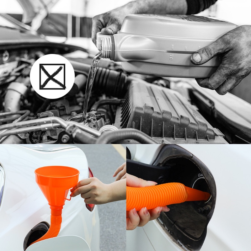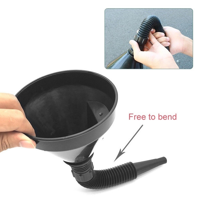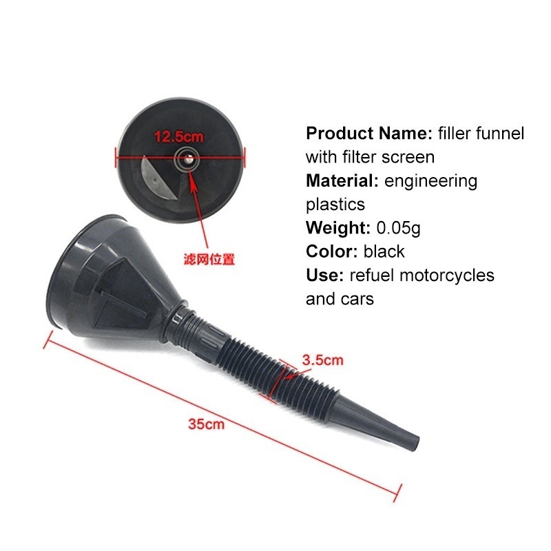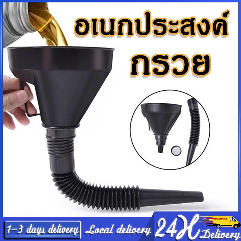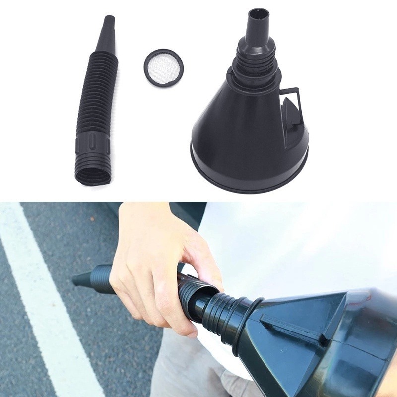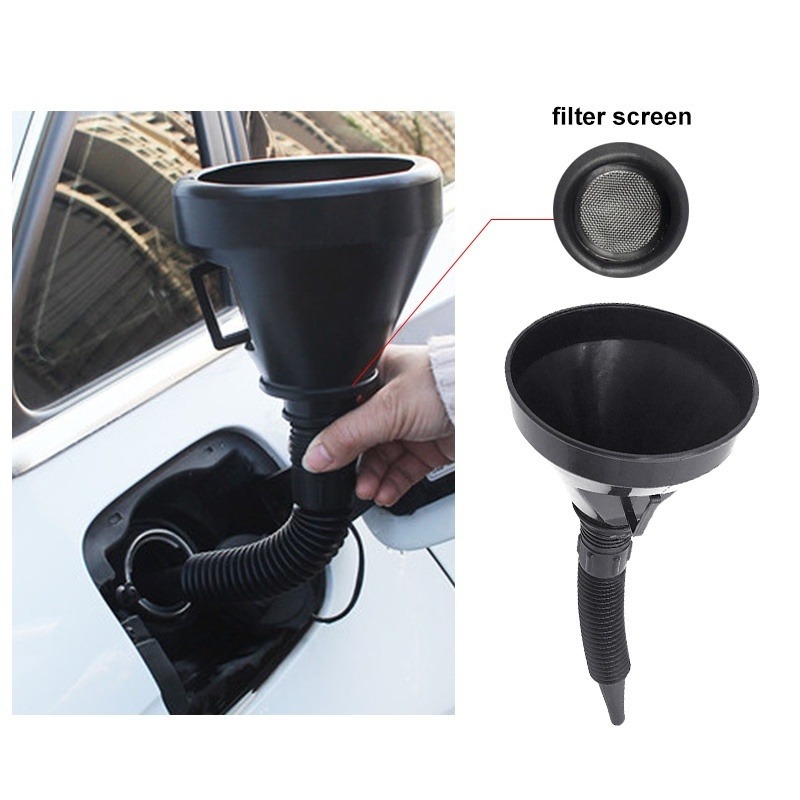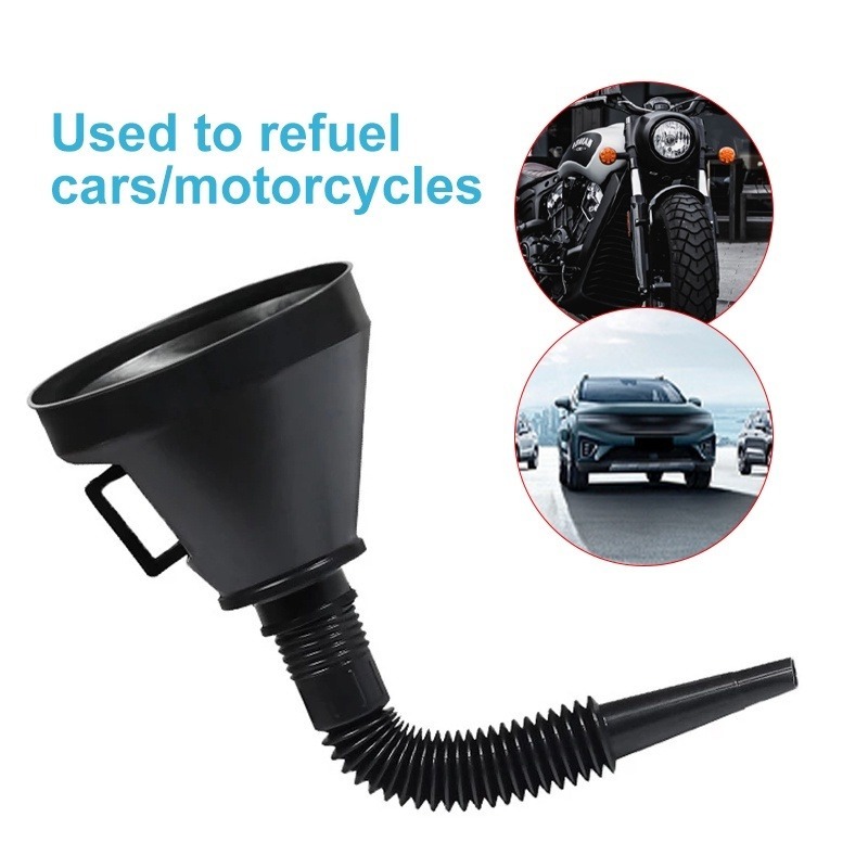 กรวยเติมน้ํามันเครื่องยนต์ ท่อยาว แบบพกพา พร้อมที่กรอง รถมอเตอร์ไซด์ รถบรรทุก เทน้ํามัน กันกระเด็น / กรวยเติมน้ํามัน ยืดหยุ่น สากล