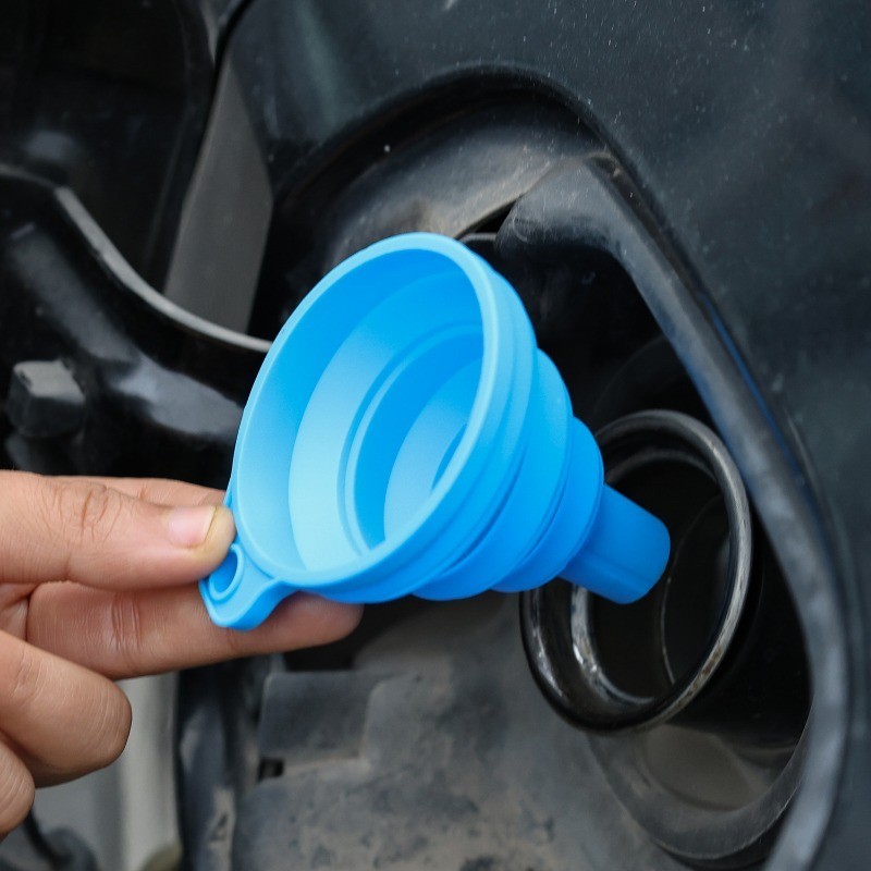 กรวยป้องกันน้ํากระเซ็นน้ํามันเบนซิน-แบบพกพาพับได้-เครื่องมือเปลี่ยนน้ํามันยานพาหนะ-เครื่องยนต์รถช่องทางเติมน้ํามันแบบยืดไสลด์-ช่องทางของเหลวซิลิโคนขนาดใ