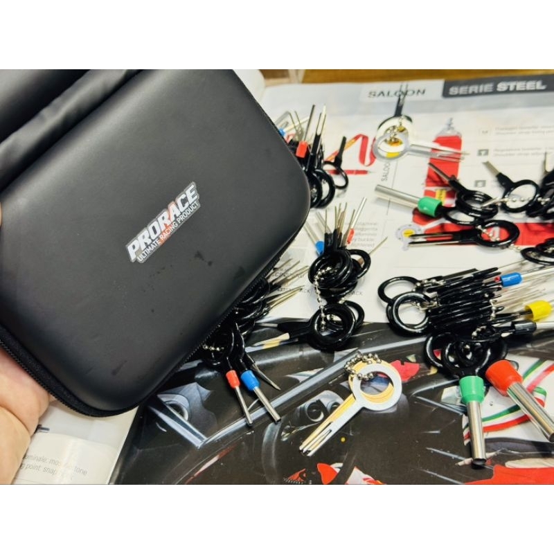 ชุด ถอดพิน PRORACE ถอดขั้วปลั๊ก สายไฟ สามารถใช้ได้ ตรงทุกรุ่น รถยนต์ แบบหนาอย่างดี 84 ชิ้น พร้อมกระเป๋า โปรเรซ