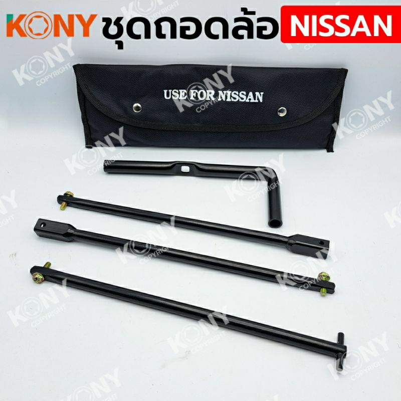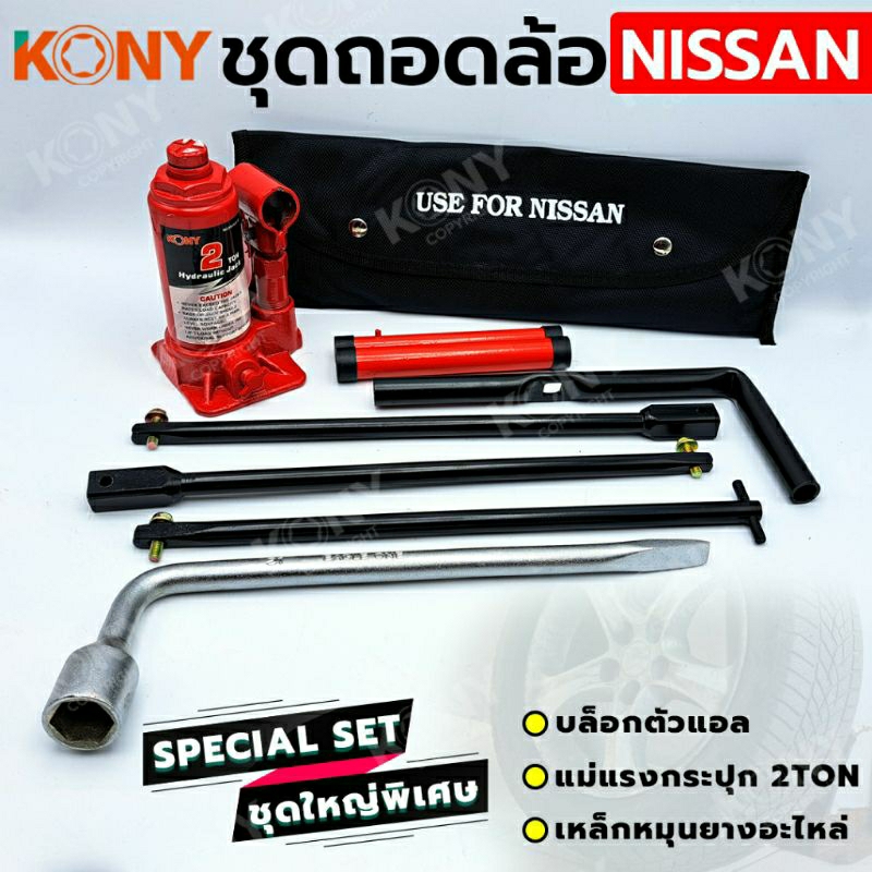 ชุดถอดล้อ Nissan 3 ชิ้น (มีให้เลือก 2 แบบ) เหล็กหมุนยางอะไหล่ + แม่แรง 2 ตัน+ประแจถอดล้อ 21mm