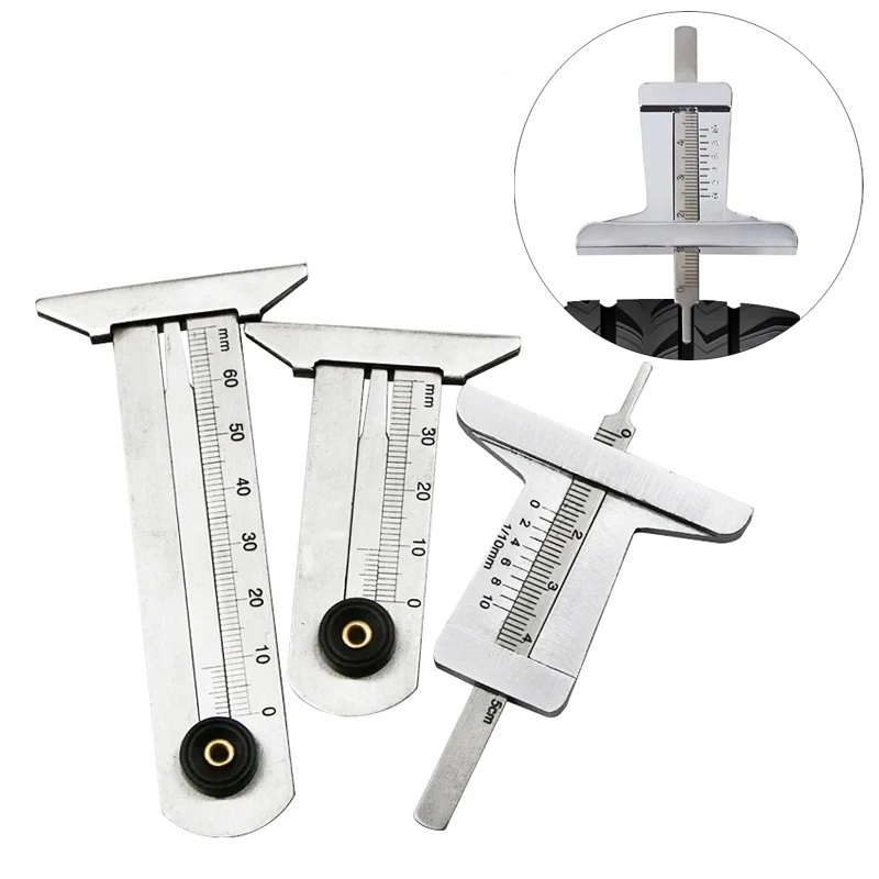 (ในสต็อก) รถสแตนเลสรูปแบบยาง Vernier Groove ความลึกวัดเครื่องมือวัดยางรูปแบบความปลอดภัยไม้บรรทัดเครื่องมืออัตโนมัติ 30/50/60 มม.