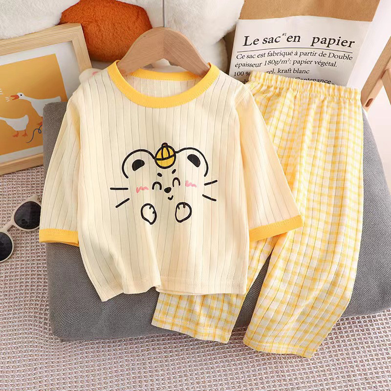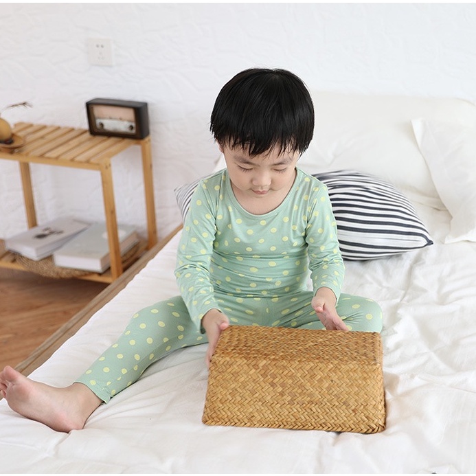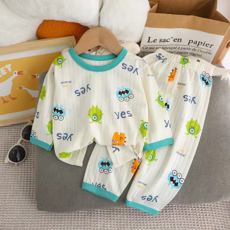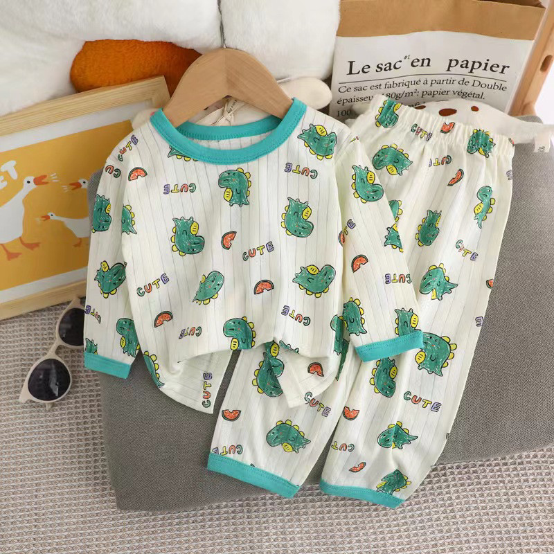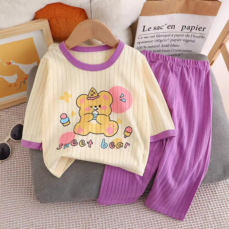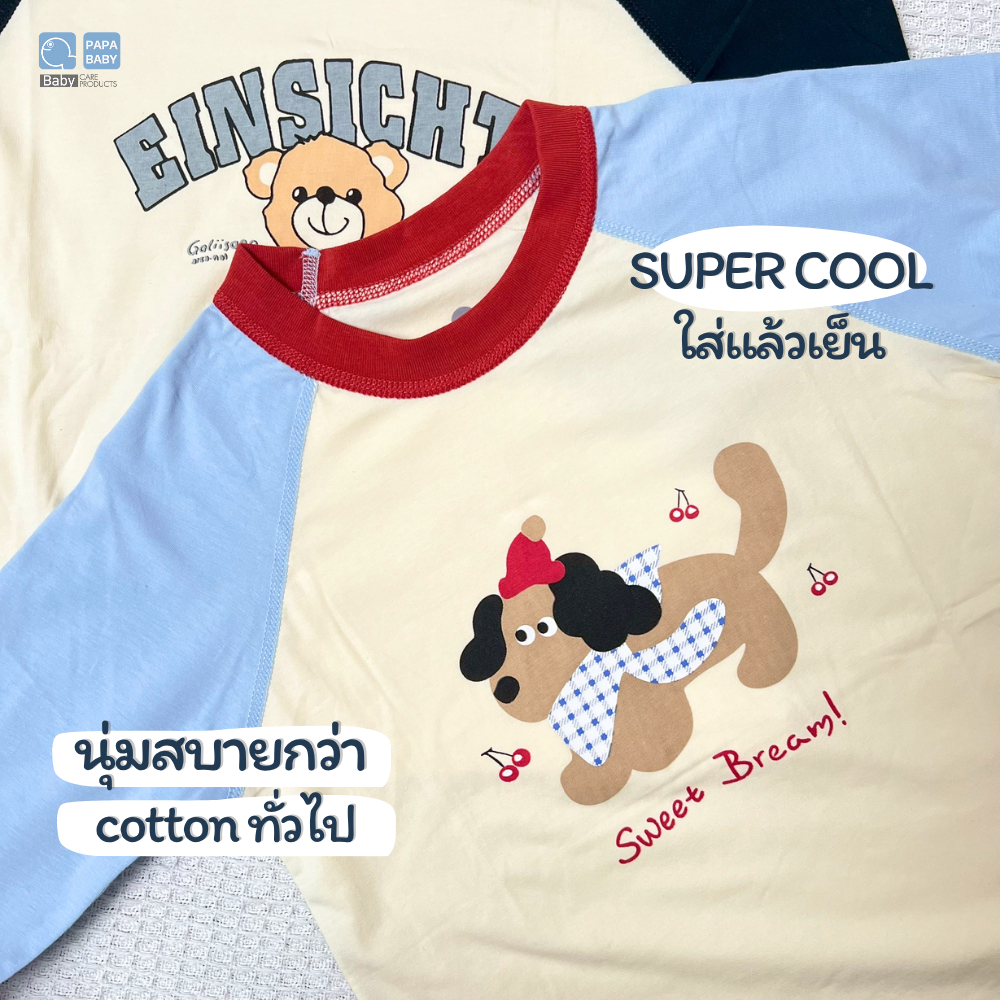 ?Jany?ชุดนอนเด็ก แขน 3 ส่วน ขายาว ผ้าใยไผ่ ใส่สบาย นุ่ม ไม่หนา เซ็ต 2 ชิ้น ราคาถูก #CT24