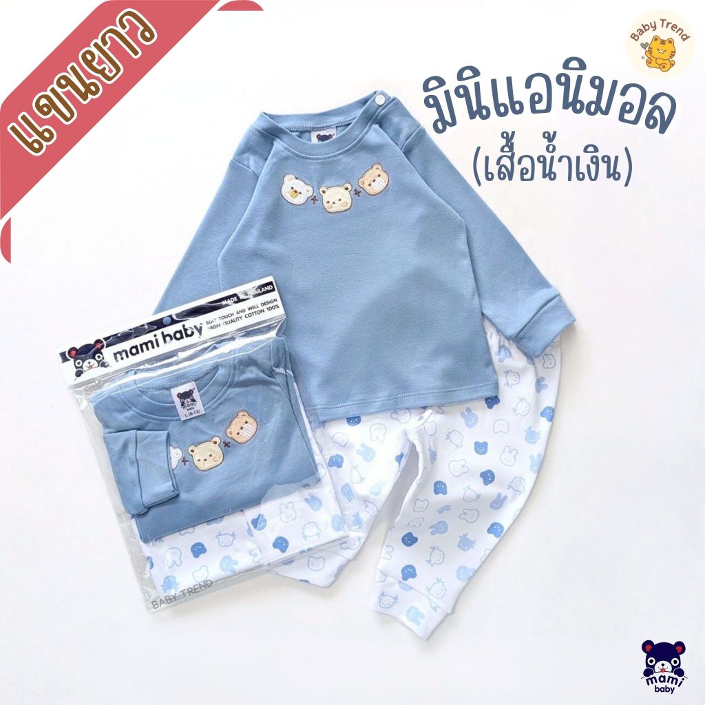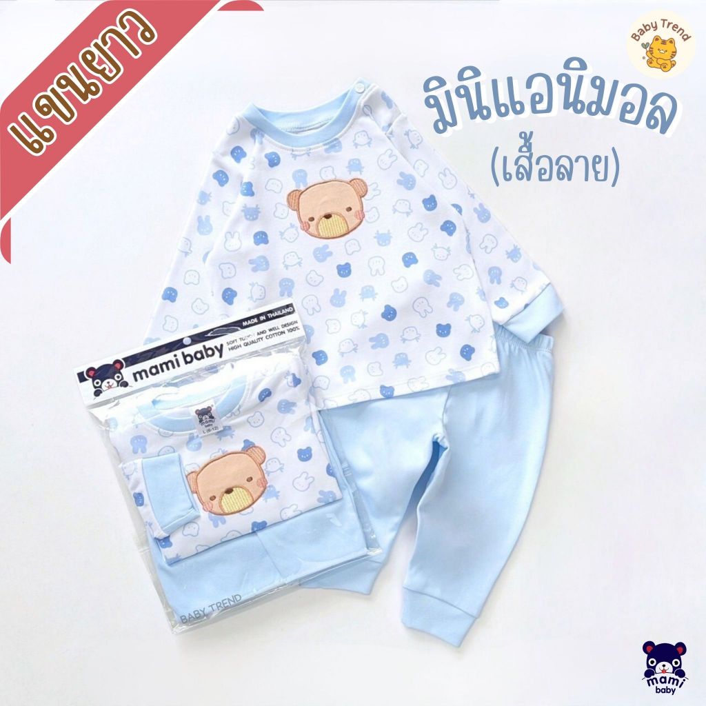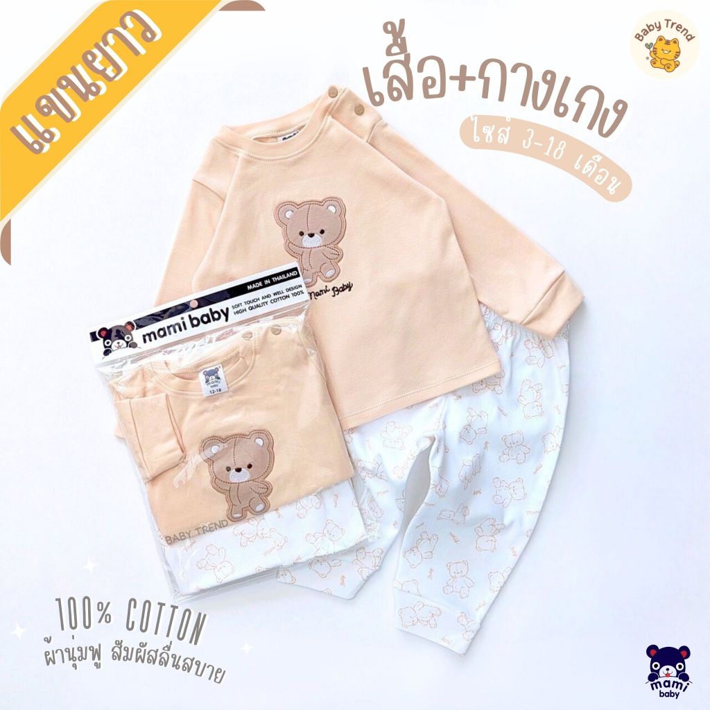 Mami Baby ชุดนอนเสื้อแขนยาวและกางเกงขายาว ผ้าคอตตอนนุ่มๆ ไซส์ 3-6/6-12/12-18 เดือน