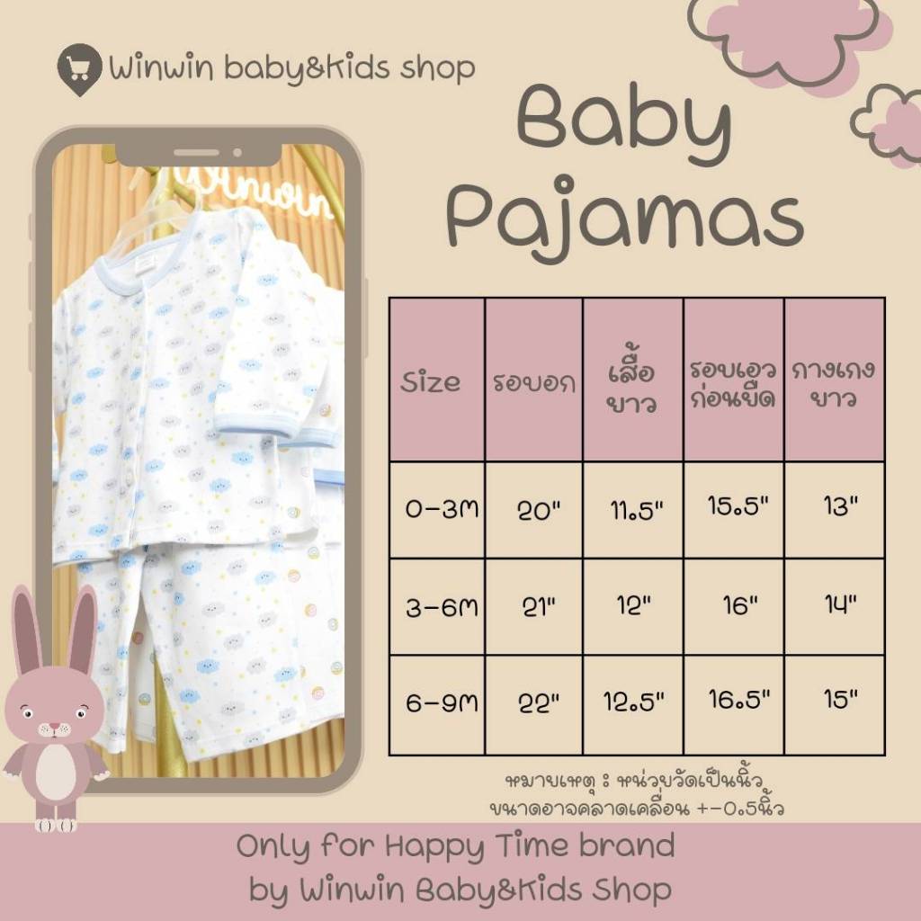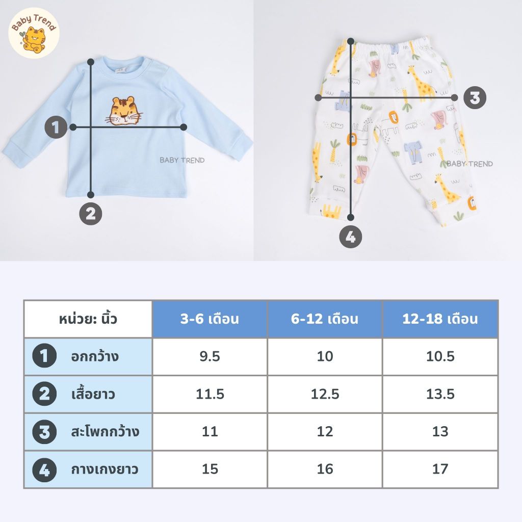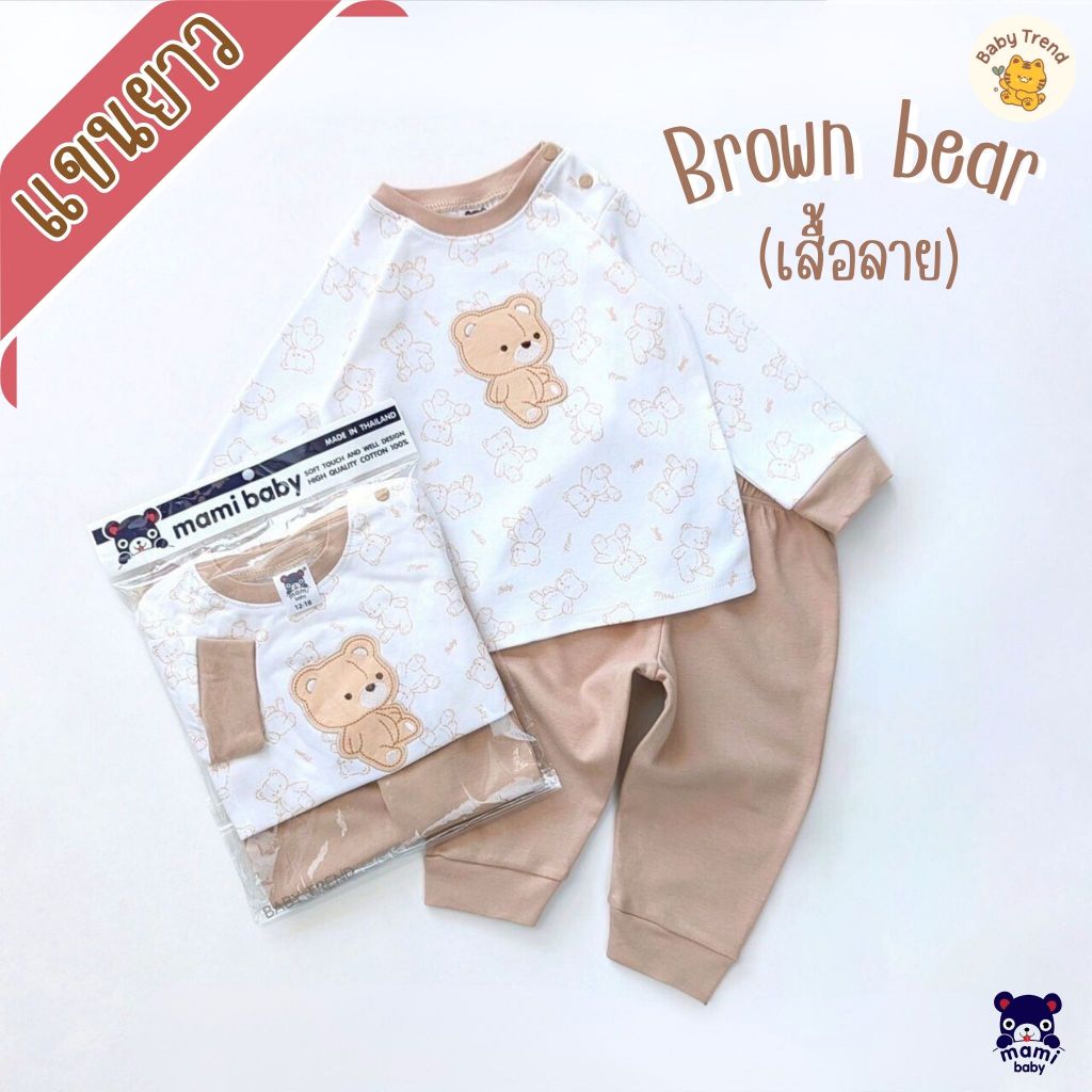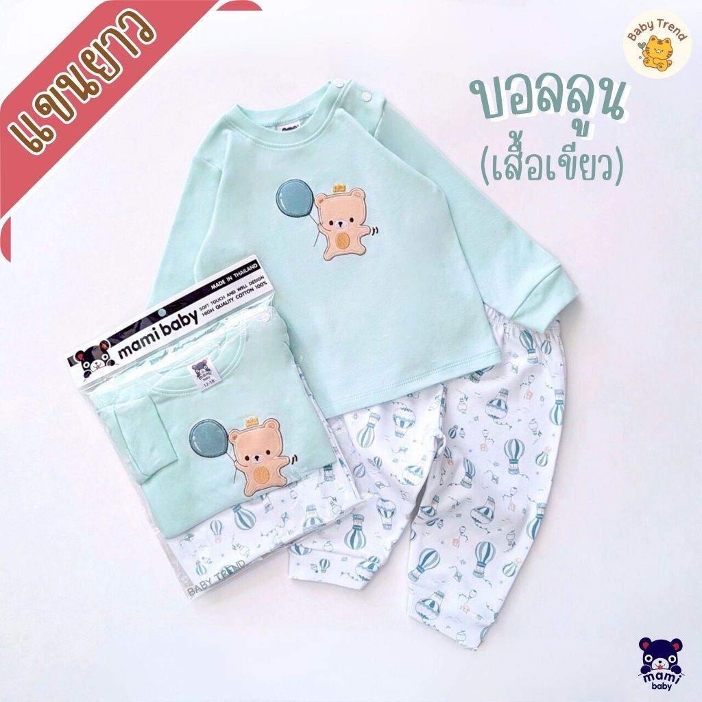 Mami Baby ชุดนอนเสื้อแขนยาวและกางเกงขายาว ผ้าคอตตอนนุ่มๆ ไซส์ 3-6/6-12/12-18 เดือน