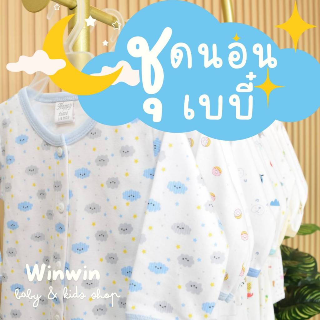 *ไซส์6-9เดือน* ชุดนอนกระดุมหน้า กางเกงต่อเป้า ผ้าคอตตอน100% ชุดนอนเด็ก