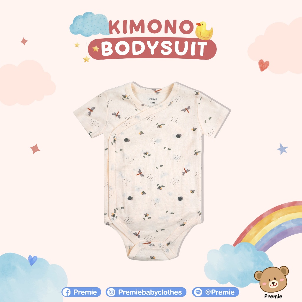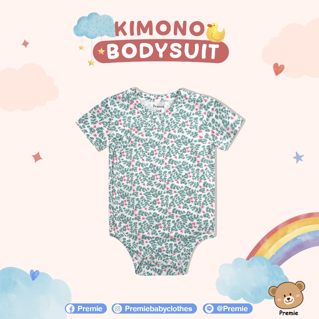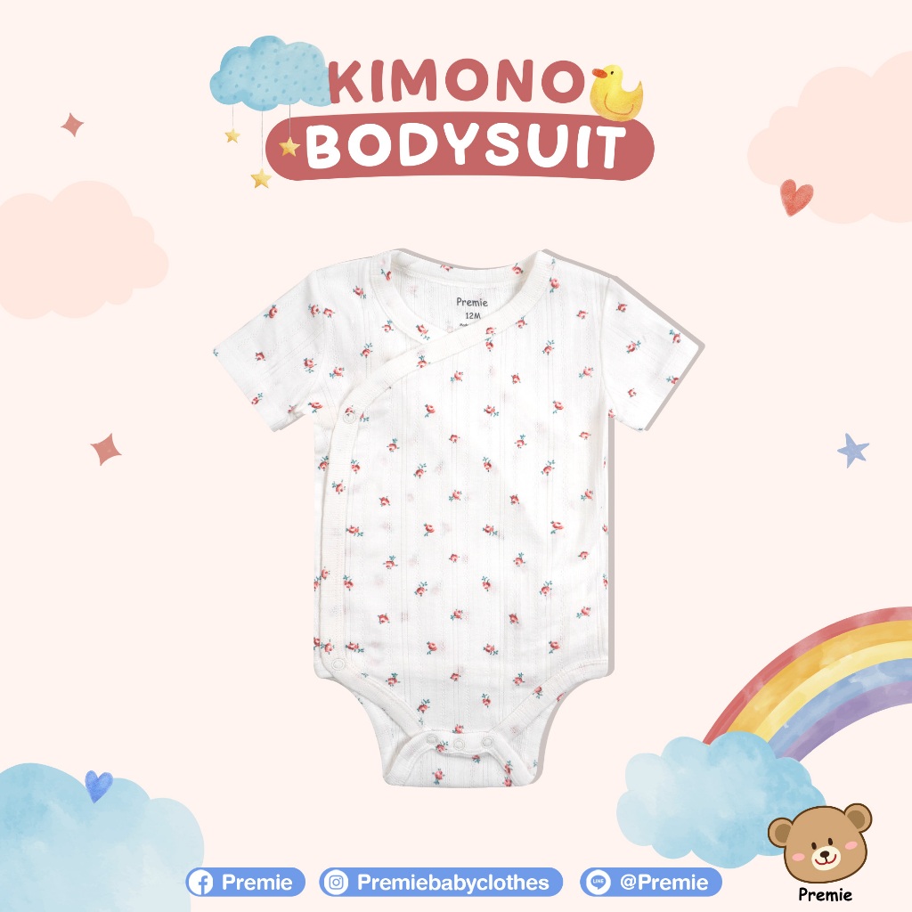 (Premie) Kimono Bodysuit บอดี้สูทแบบป้ายไขว้ สำหรับเด็กเล็ก ลวดลายน่ารัก สวมใส่สบาย